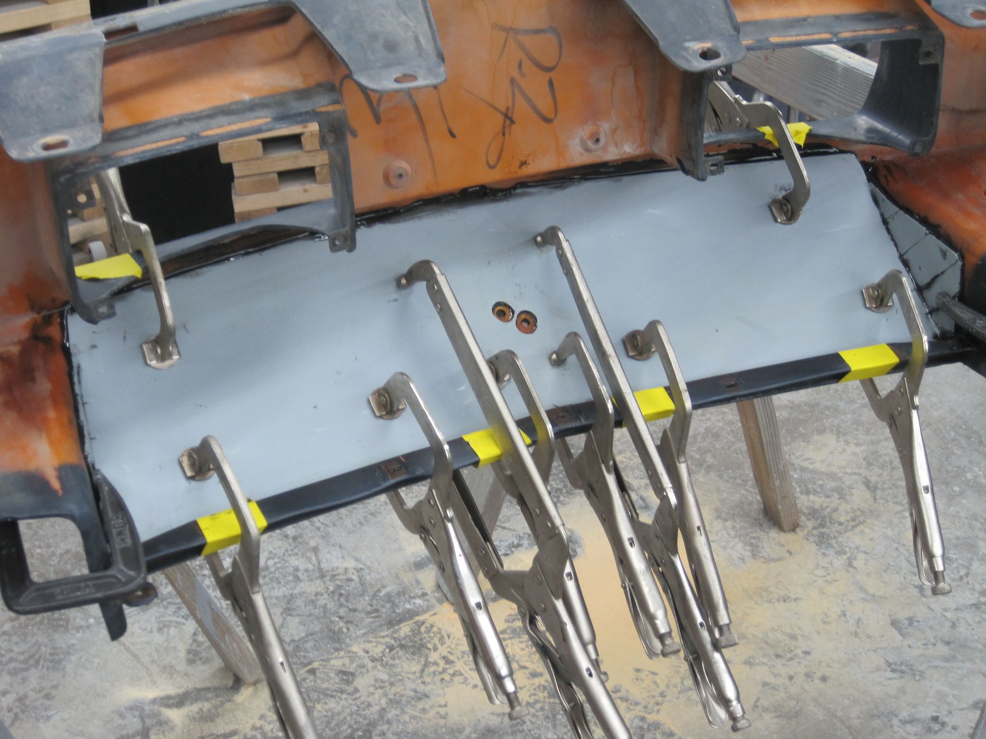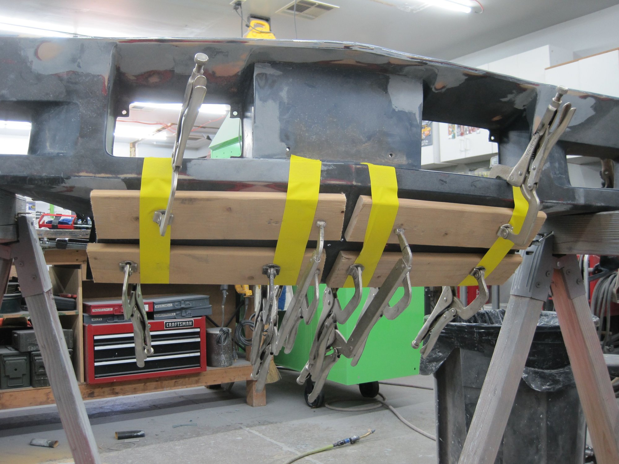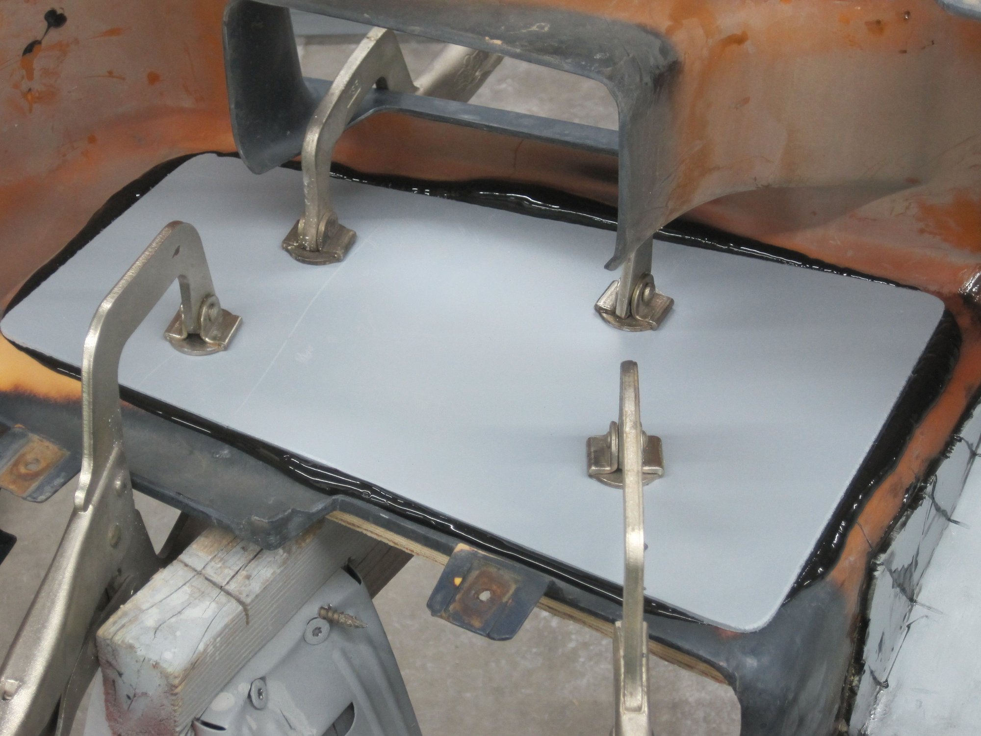 The headlight buckets look great too. I applied some heat to the wavy spots and clamped some ¾” plywood to the top and bottom while they cooled to get them as flat as possible before I glued on the plates. I didn’t try experimenting with using regular windshield urethane. I really feel good about this structural adhesive.