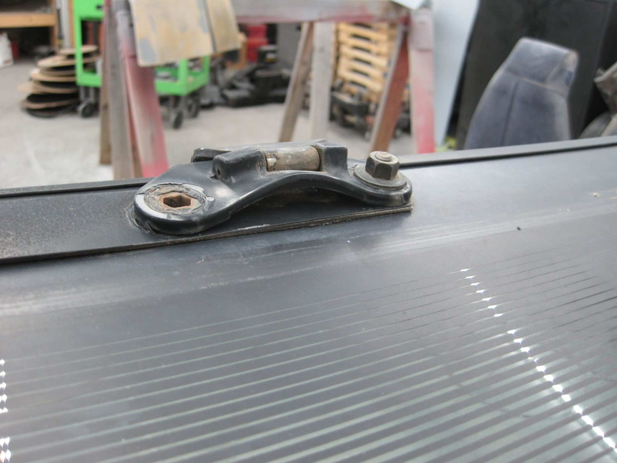 Wow, your hinges are impressively warped. When I repainted my car i used my stock hinges. They weren't all bowed like yours but the actual hinge pivot had a good amount of play. I figured that was safer than a tight hinge. I figured there was a lower likelihood of shattering the glass that way. I did use new cap bolts in the glass though.