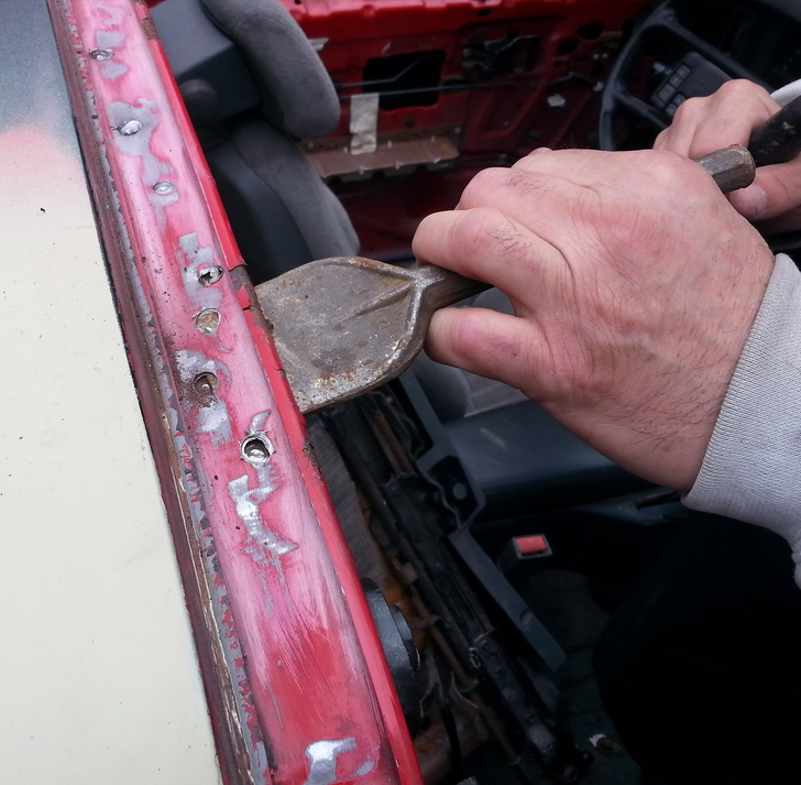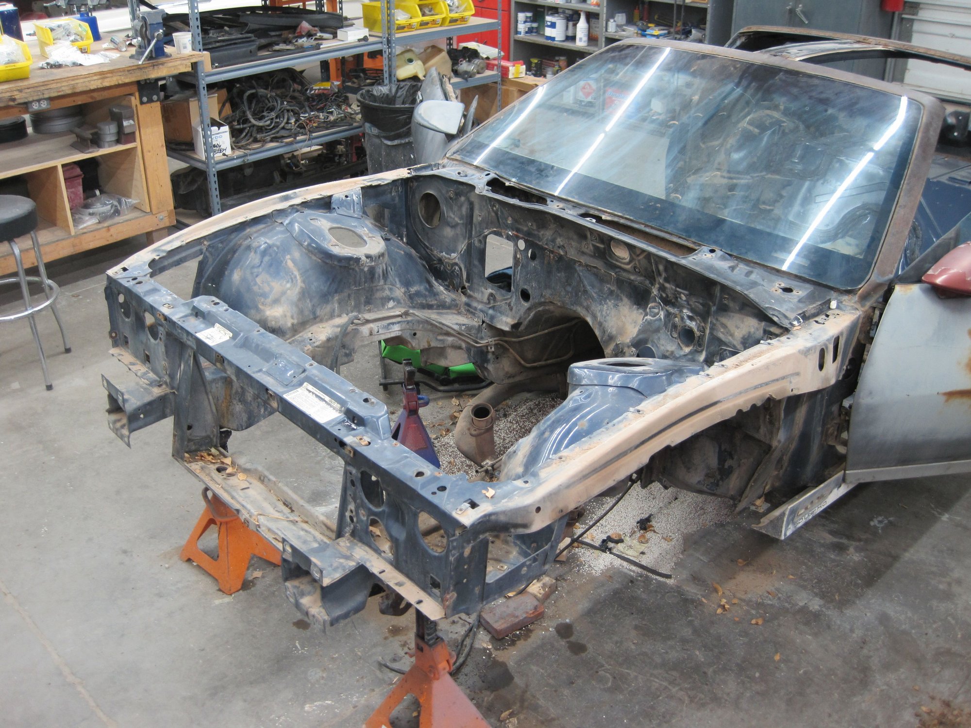 Got a lot done today. The front end and interior are completely disassembled. I started on the doors this evening. I should be able to finish the rear of the car in the next day or two and also remove the cracked windshield.