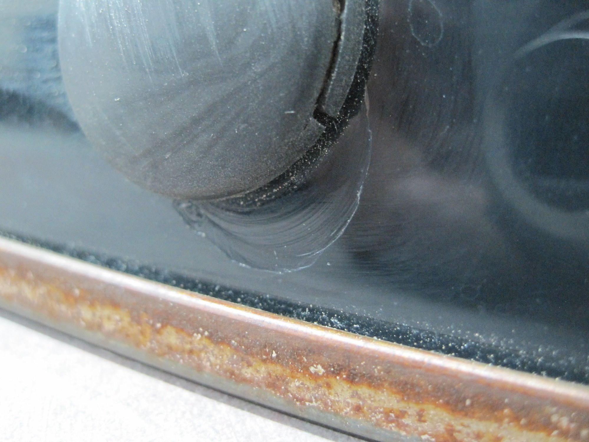 I removed the hood and hatch glass. I'm not happy and a little concerned with the result of the glass removal. One of the bolts started turning and chipped the glass. It's not really a chip, it's more like a thin layer of that glass came off around the bolt head. I've had different experiences with tempered glass. Sometimes they can take a beating then other times they explode unexpectedly. I erred on the side of caution and finished removing the hinges from the body instead. I'll get to the stuck bolts later.