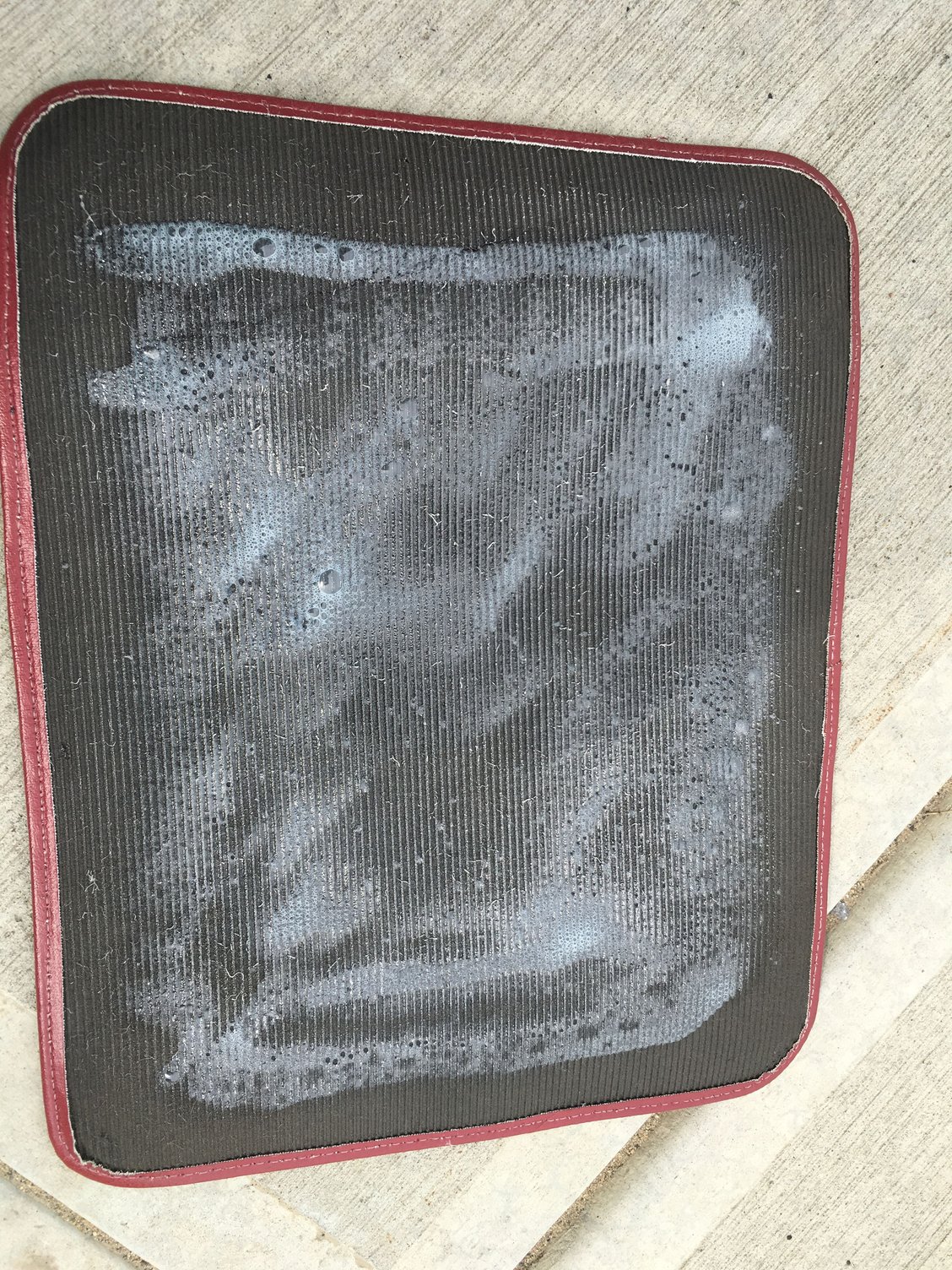 My stock floormats are in decent shape on the carpet side, but the back has disintegrated in spots and they were falling apart. Because I want to keep the factory mats I thought I'd try to "rebuild" them. I was able to do it using a set of donor mats cutting them to fit and adhering them to the oem mats in the car.