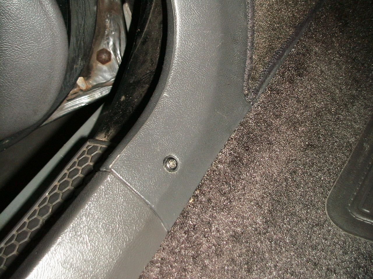 your angle needs to be toward the outside of the car a smidge..that seems to be the right screw,but it screws thru the carpet into a slot near the sill plate....you'll need to push in and screw by feel, but you will find it eventually...pull piece out, see where hole is, then do it "blindly" by memory...small details like that is important..if you skimp on that tiny detail, the rest could be worse...