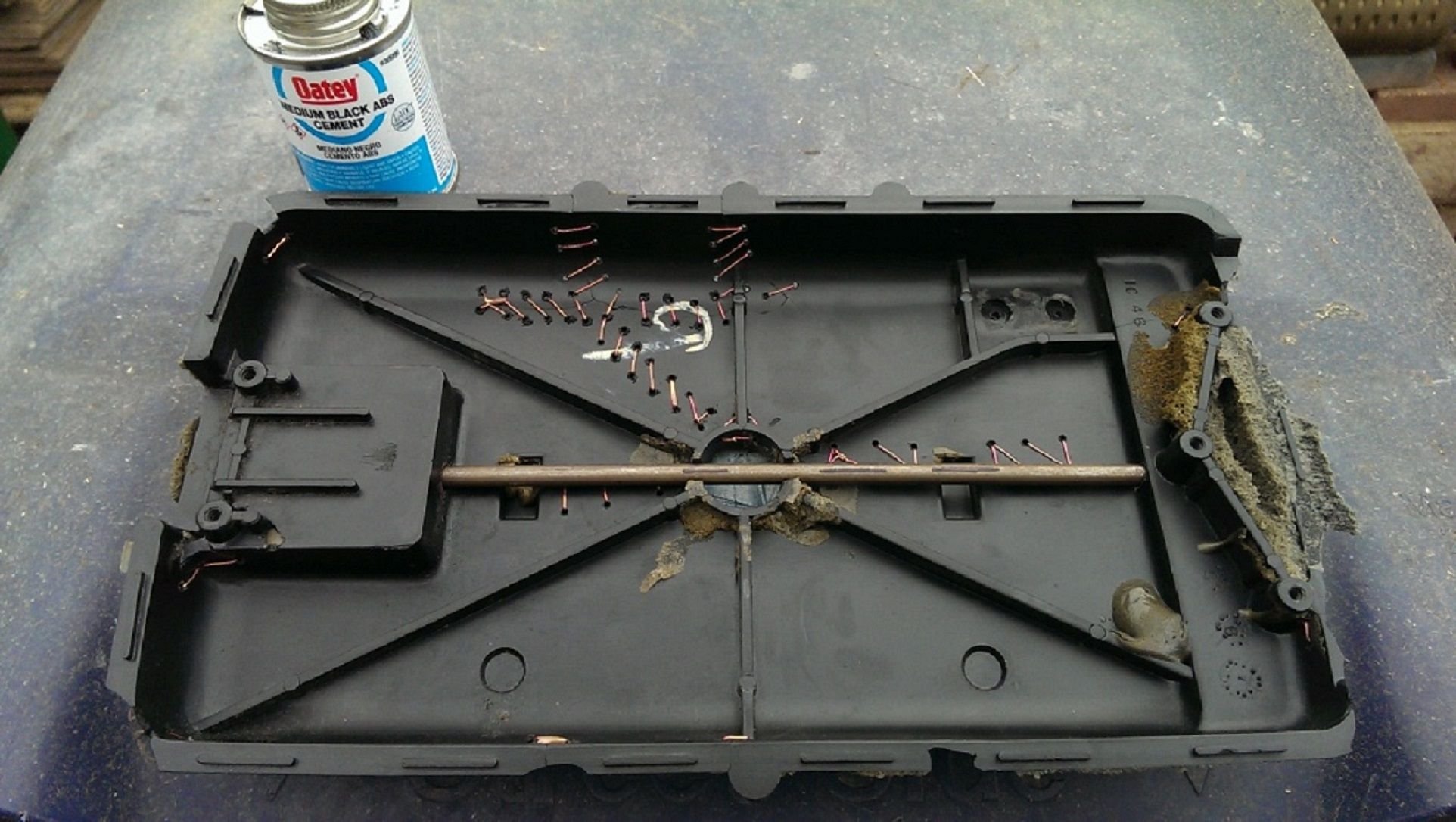The copper wire is key to keeping the broken pieces together, steel rod keeps the lid from bending when i accidentally put my arm on it.