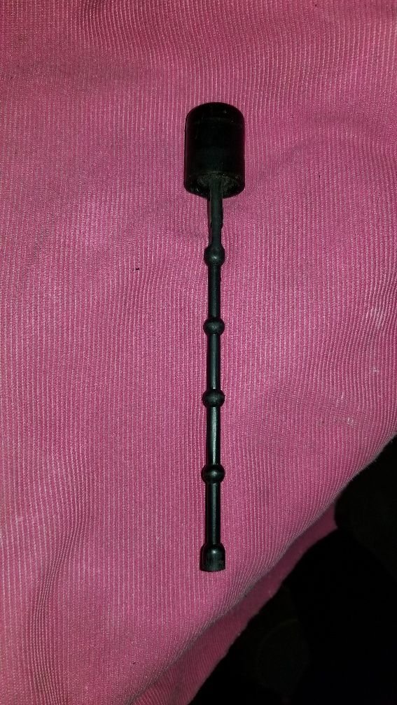 Thanks all for your input. I remember it being very had to shift in and out of park, so there's definitely something wrong and I'm betting it's related to this button. I took the button off and there's a pic of it below as well as the shifter handle (I have taken it apart and put it back together and that looks good). The rod doesn't look broken at the end. Tomorrow I will try to insert something down the shaft to see if I can get the shifter to unlock - that's a great idea HenryD3. The previous owner was on a low budget and the transmission swap was not done with the utmost of care from what I can see.