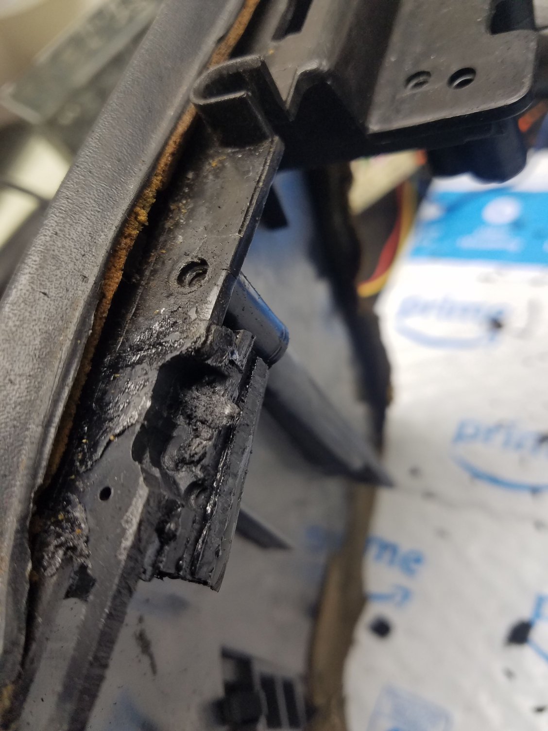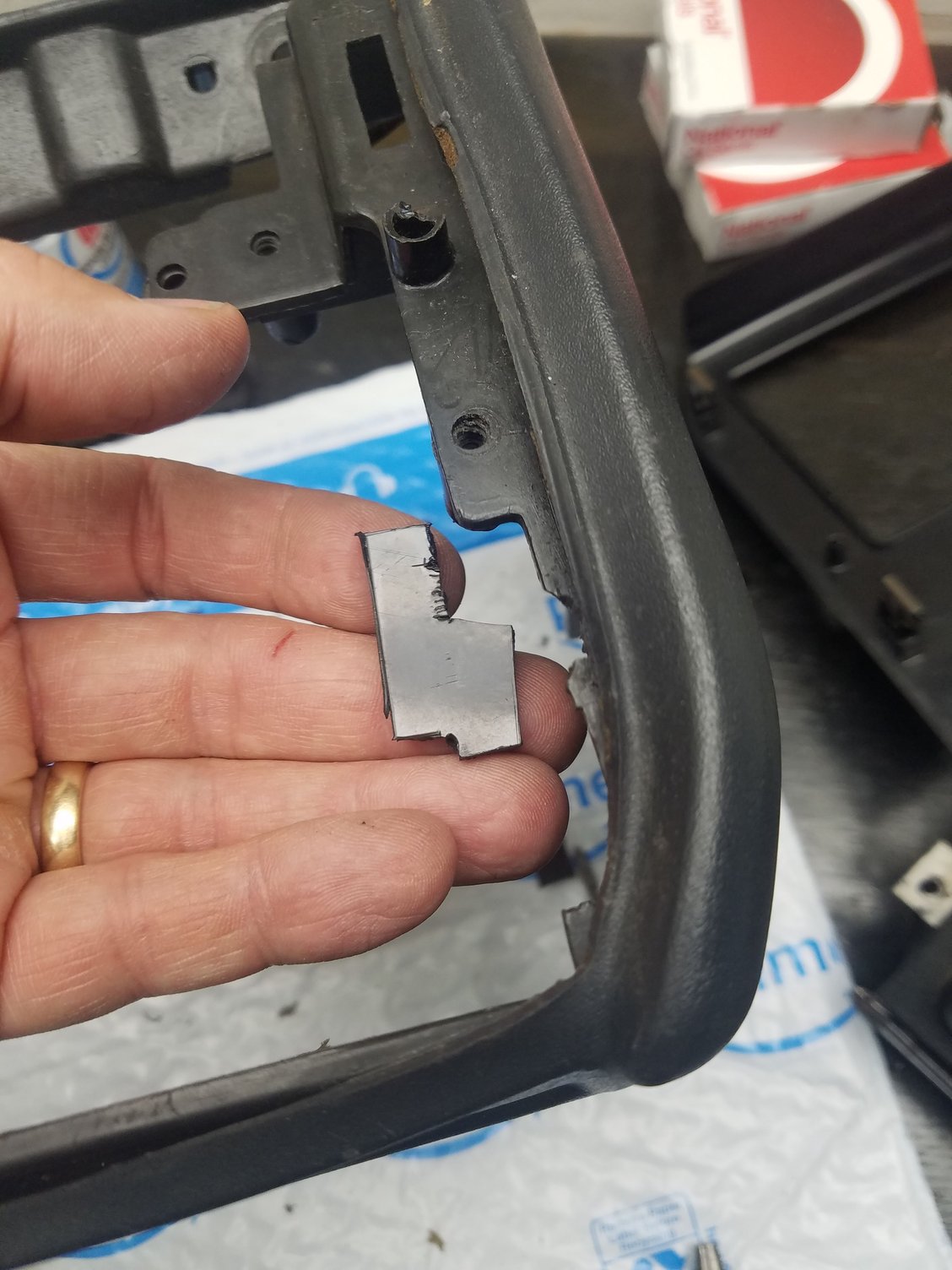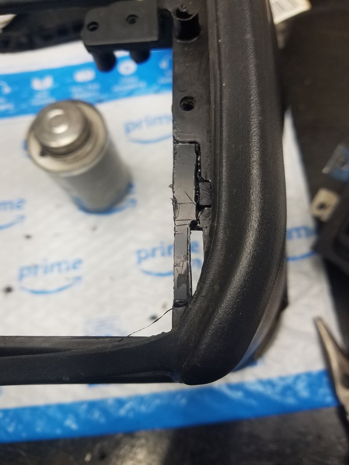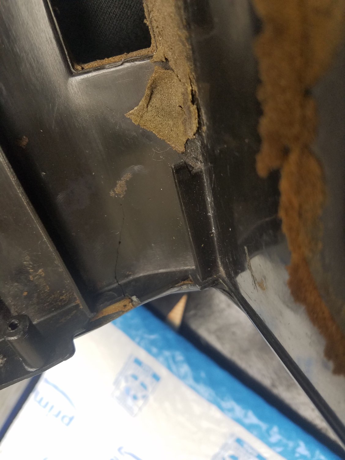 With all this enforced downtime, I figured I might as well take a look at my radio pod. I have two to choose soon, the one from parts car and the one in my keeper. The parts car one was in better shape, but. Ot as good as i had initially thought. Initially, I. Thought I only had one crack to repair. Turns out much more has followed! The parts car pod. At first glanc, i tho8ghr only fixing one crack was needed. Wrong! Here is rhe main crack thay i thought was the only issue. First crack repaired with plastticc welding.