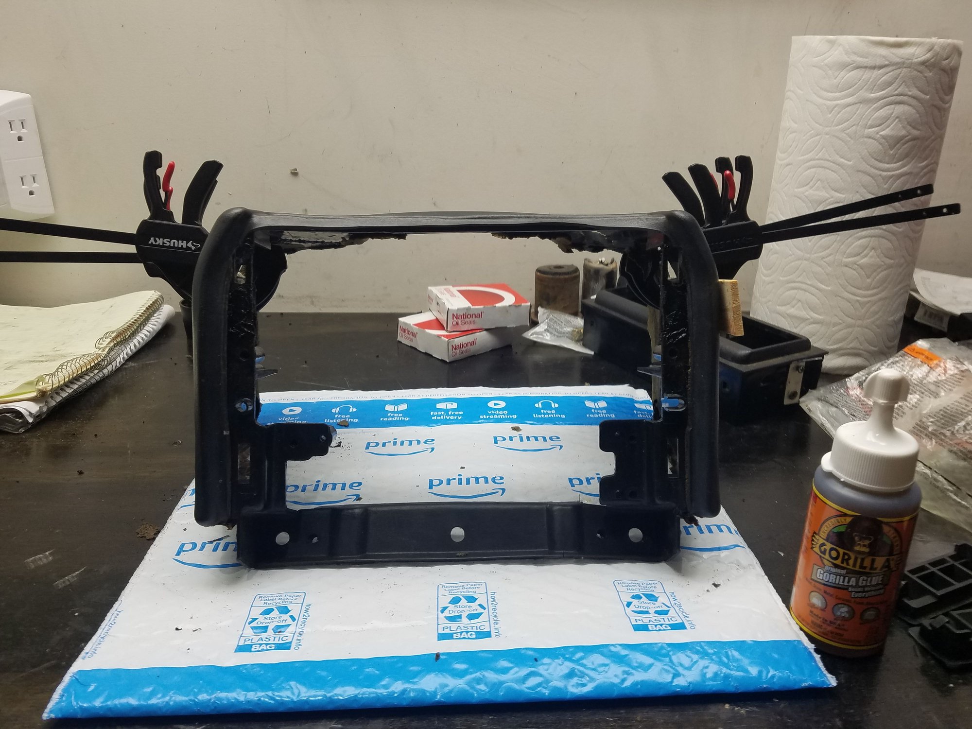 also going to try my hand at Gorilla Glue to pull the vinyl wrap back into place. It has pulled away on the bottom - good place to test as it ends up being fully covered by the faceplate. Also have some slight pull away around the vent holes. Those will be step 2.