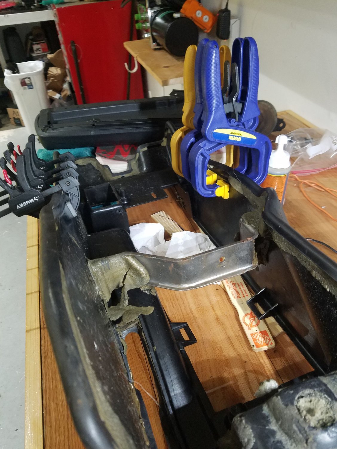 I spent an hour this morning reading lots of your thread. Wow, great work! Really glad you linked it in as I was also trying to figure out how to cure the peeling vinyl around the vents. Seeing your example, I just picked up some small trigger clamps that should fit thru the opening.,