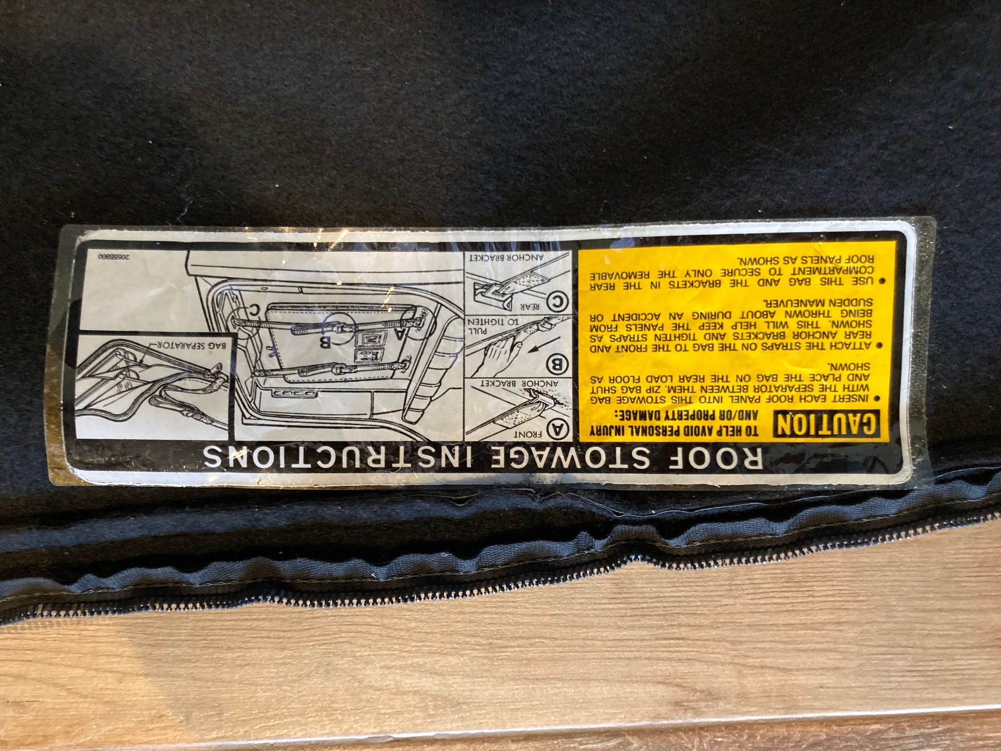 Second is a factory T-Top case. The one that you stow your hatch panels in when driving with them out. It goes in the back and secures to hooks in the "floor". It's in very good condition. I didn't use it much, and it was stored in a closet for the past 25+ years.