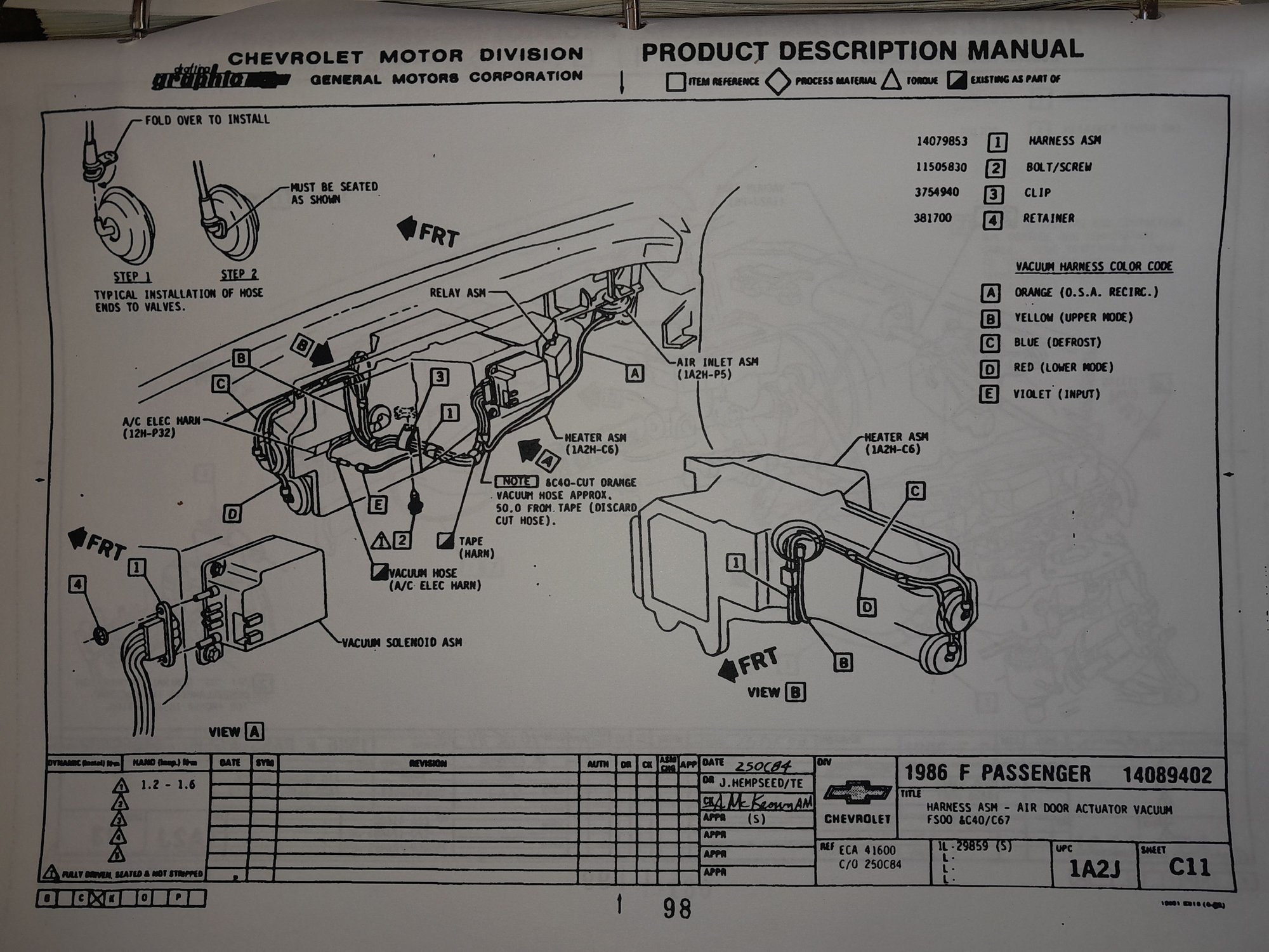 Got my car with dash completely disassembled and reinstalling the climate control box now and need to know where the vacuum hoses route. I have an assembly manual but it is for an 86 and the color codes on the vacuum lines are different than on the 88 apparently.