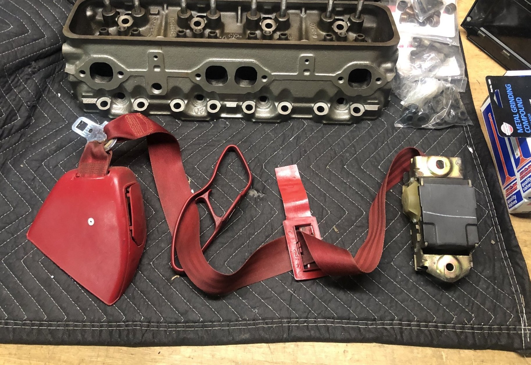 I found a red passenger side belt,.... The "inertia" lock seems to work fine on both the upper and lower belt retractor too. ( hold level the belt will pull out,... hold at an angle and the belt can't be pulled out. )