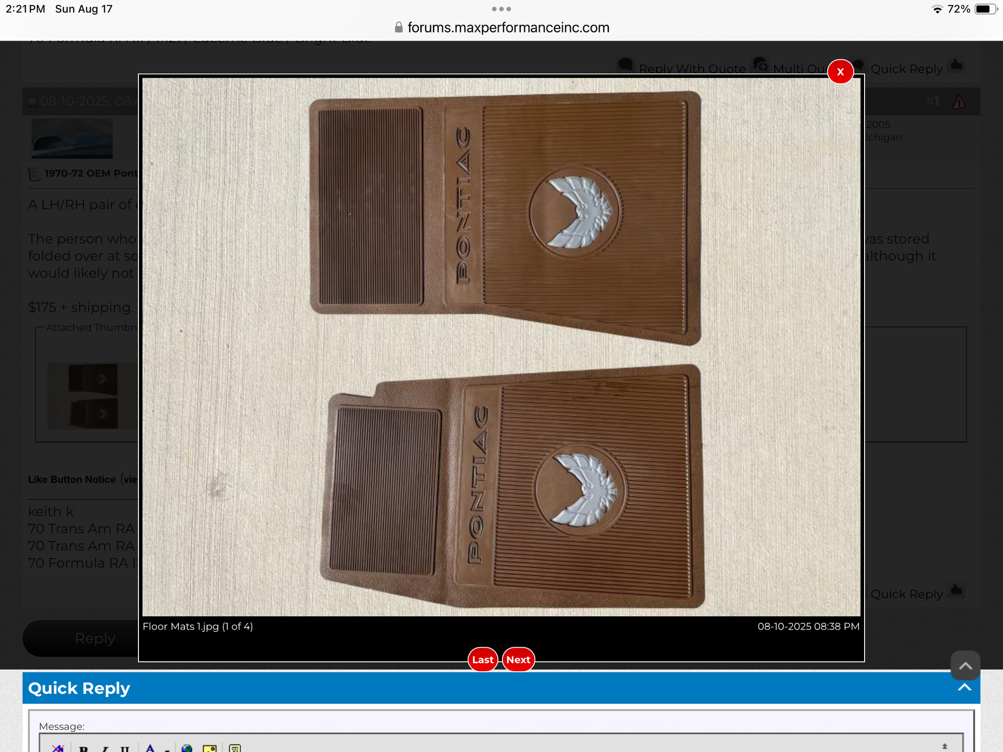Many years ago, I purchased a full set of lighter grey "pants saver" floor mats for a 1990 Bonneville. I still have them.