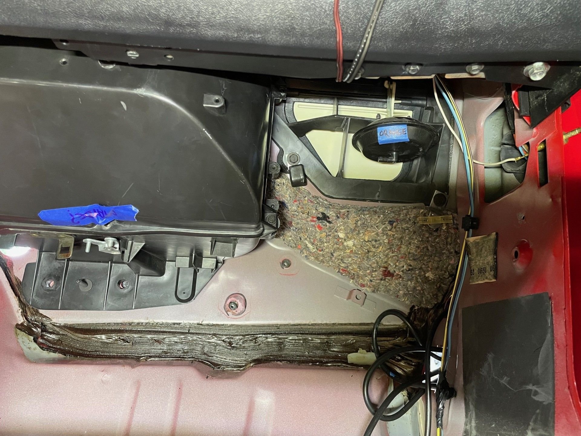 ratfink, thank you for those additional pictures. I don't think that my car had them when I bought it. In my second picture in my original post, it's clear to see that your part is not in my car. That picture was taken before I took everything apart because you can see the black HVAC box still in place in the upper left corner of the picture.