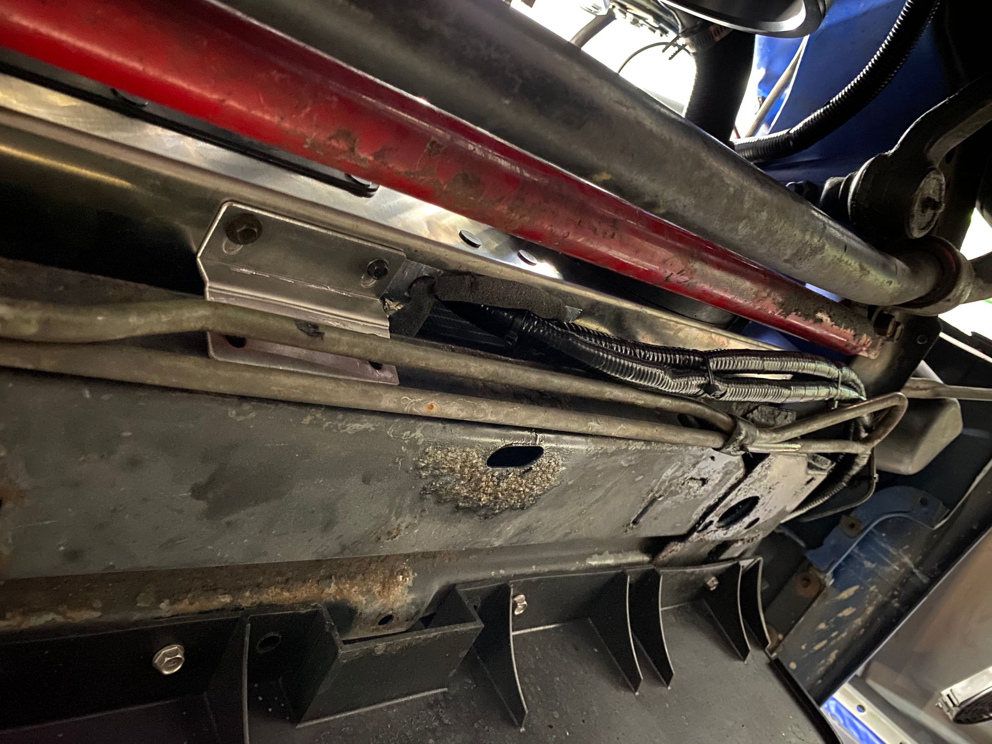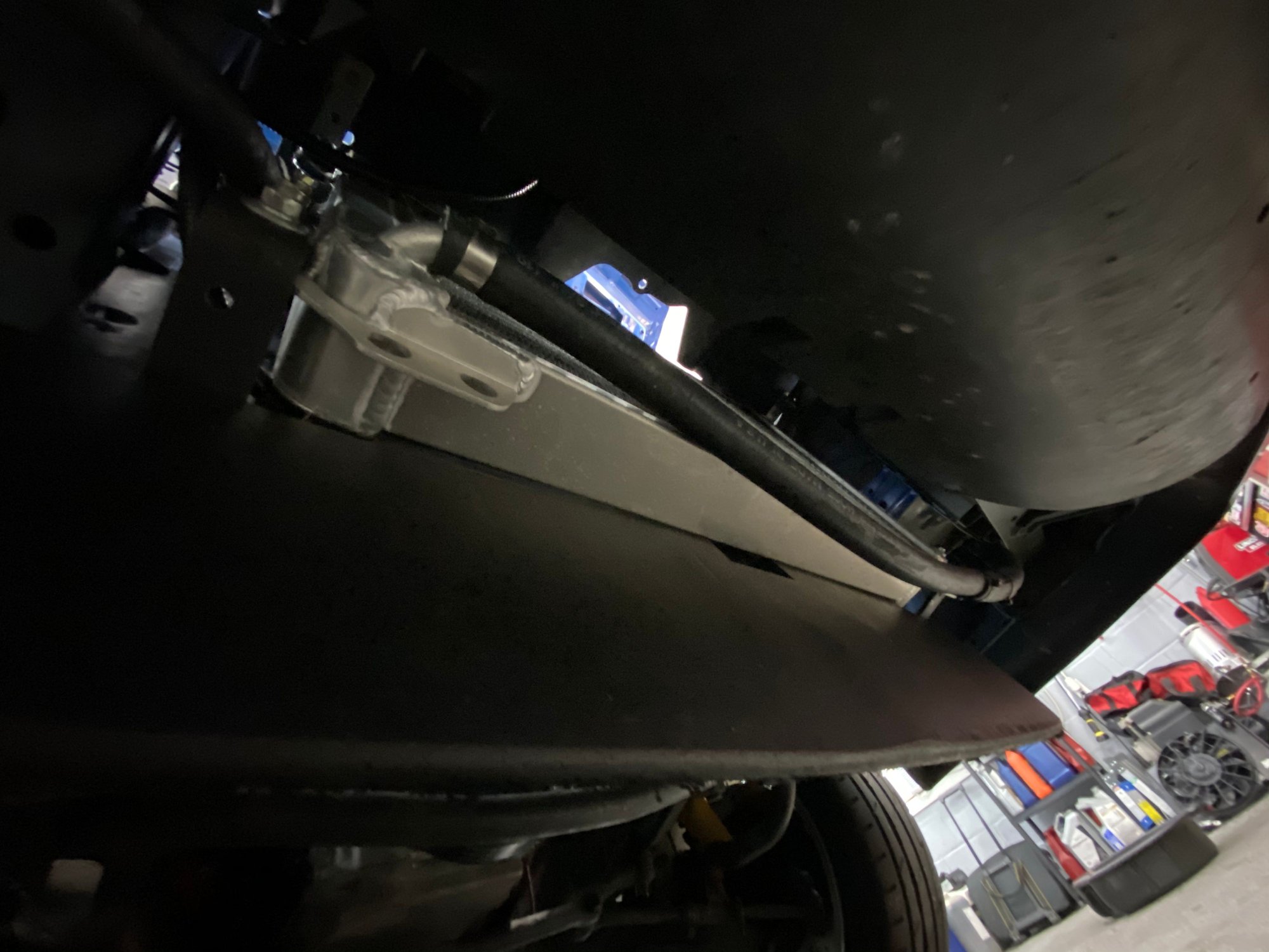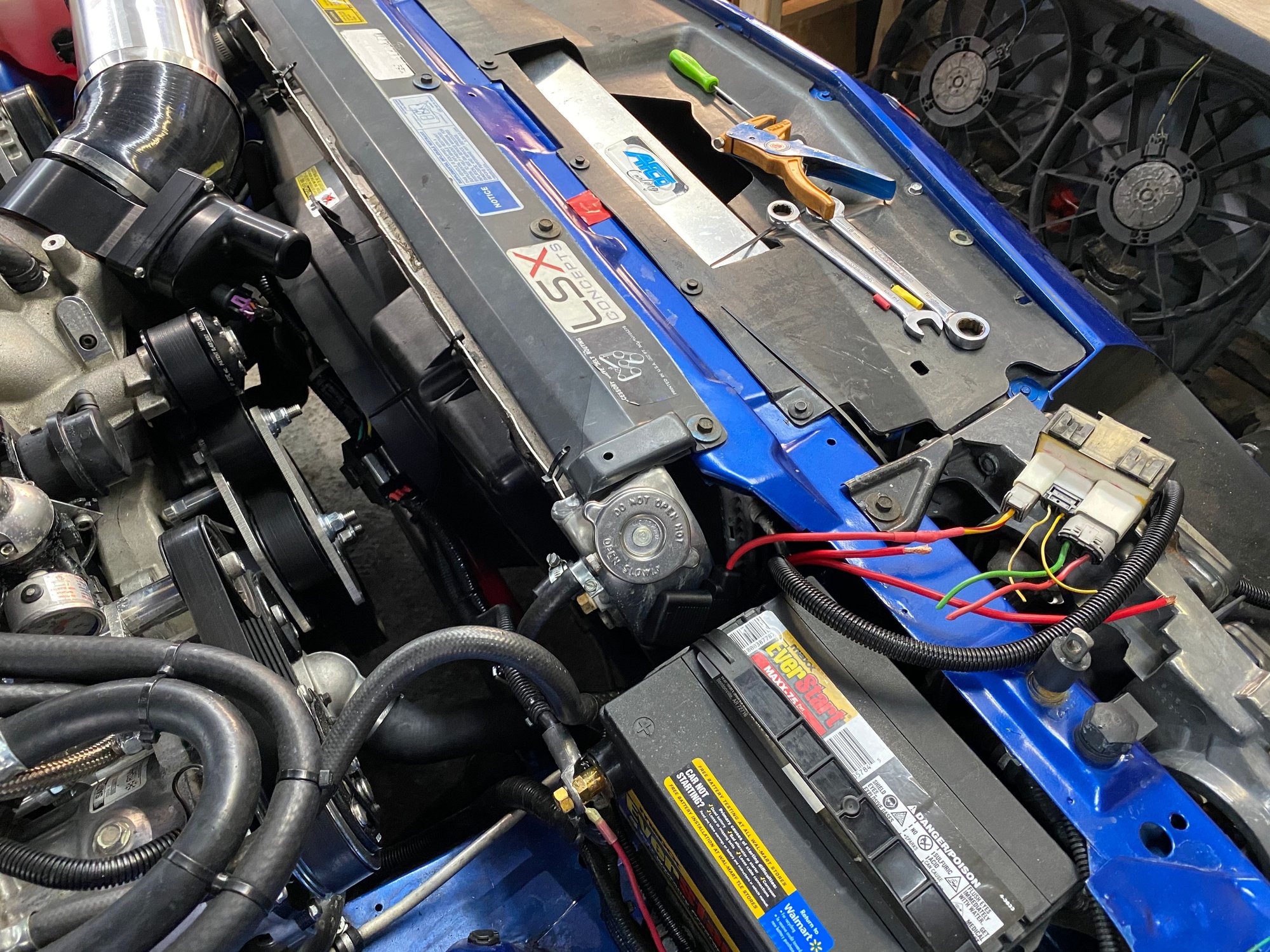 Had to make some brackets to hold the fans and radiator in place. This was long overdue anyway because the top of the radiator has been held in place with zip ties for the past 5 years. I just need to grab some short bolts to attach my bracket to the bracket on the fan shroud, plus a coat of paint and they’ll be done. I was able to utilize existing holes in the core support to install a stud for the brackets to attach to. Also with the top plastic re-installed you can’t even see the brackets. Im probably gonna drill a hole in it and use the bolt for my bracket to hold it in place. Wiring should be done tomorrow.