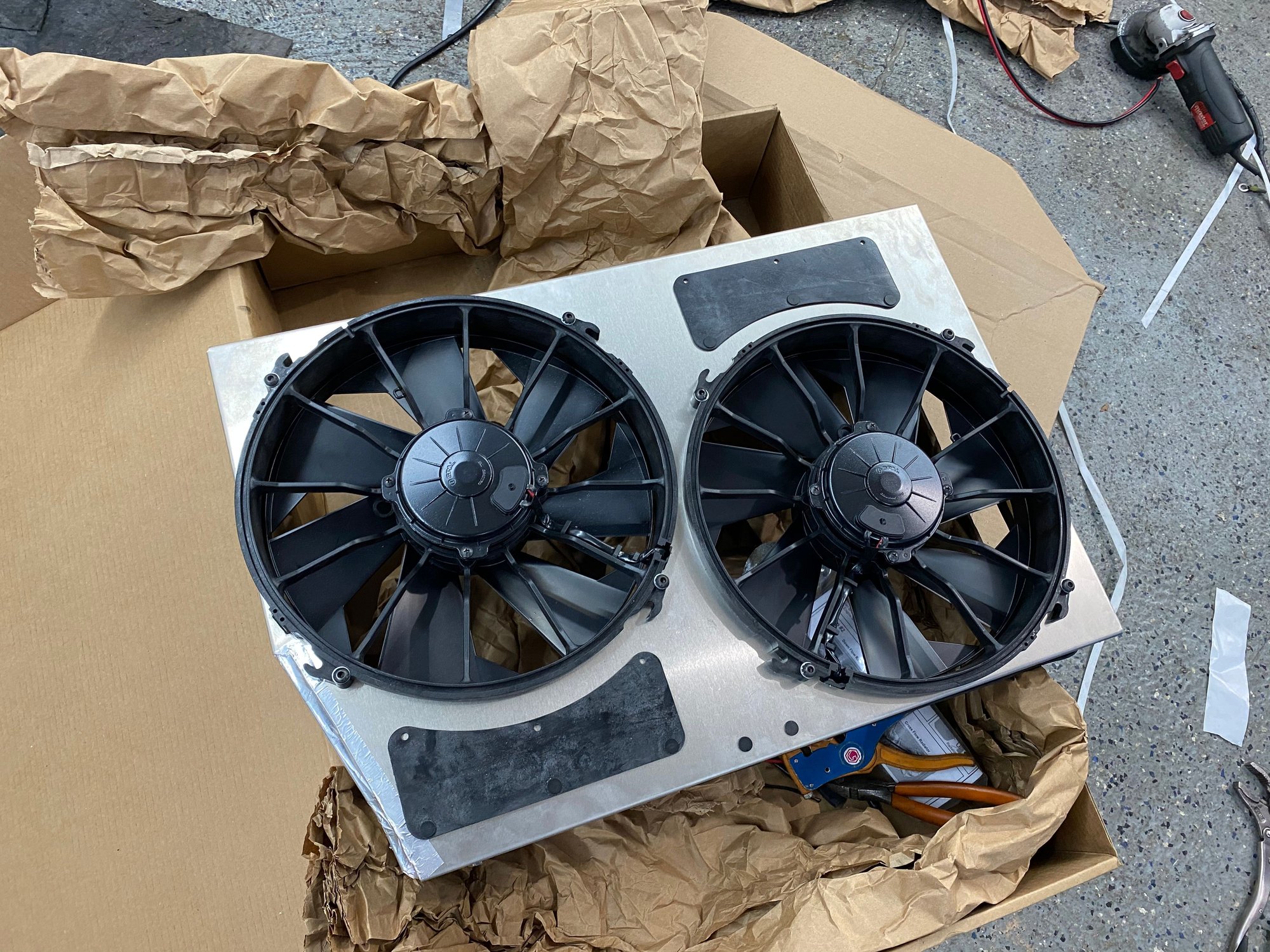 Thats a good idea, I’ll have to grab a stock tune and check it out. This came in today, so hopefully I’ll have it hooked up by tomorrow or Tuesday. Im going for tuning on the 27th, so hopefully this issue will be somewhat resolved or at least improved by Saturday. I popped the fan in for a dry fit, and it fits great. I’m gonna run to Lowe’s to grab some stick on foam to seal it against the radiator, then I have to figure out a secure way to mount it. I ended up jumping power to it will some 10 gauge from the battery, and this thing feels like a monster.