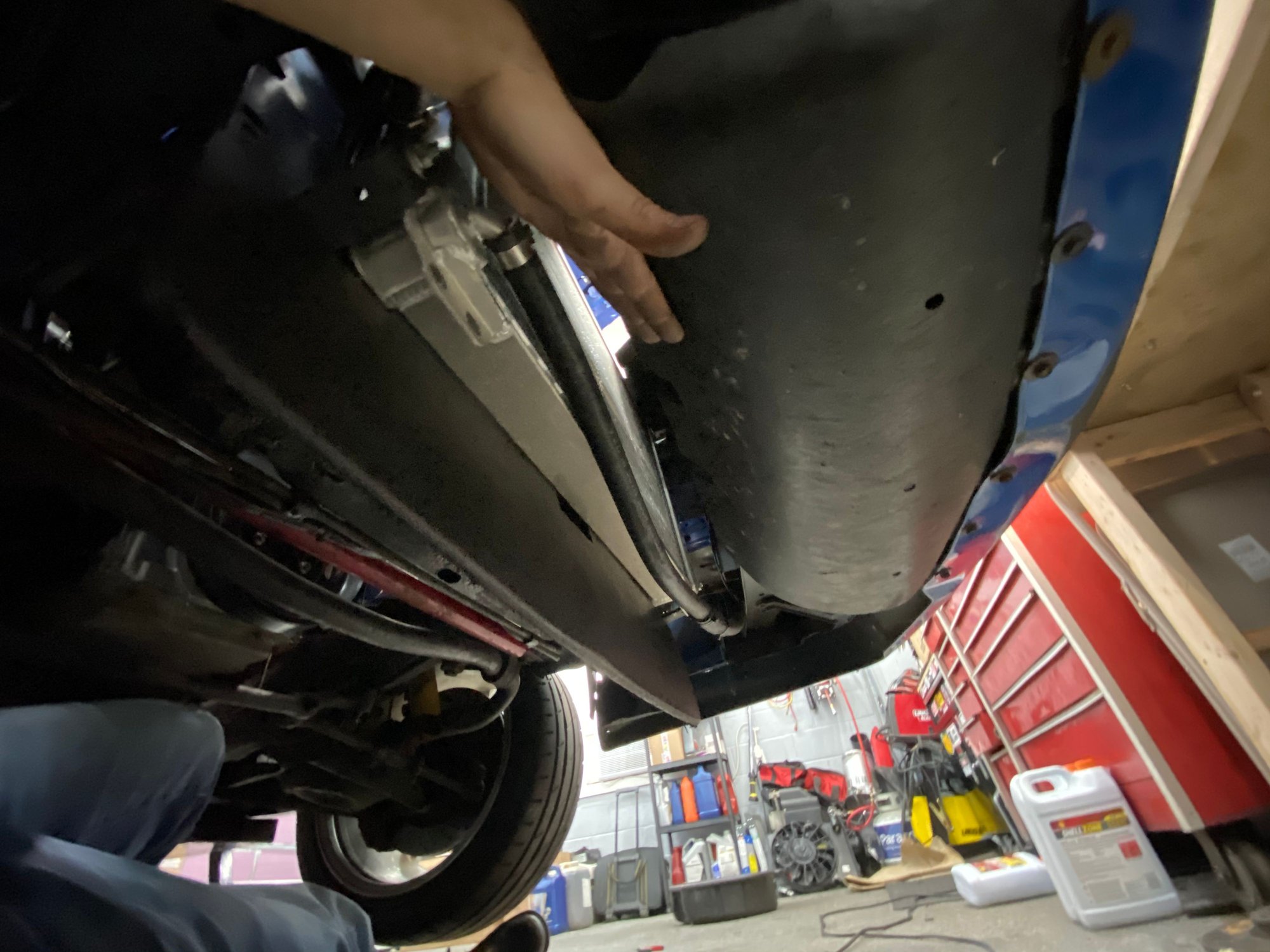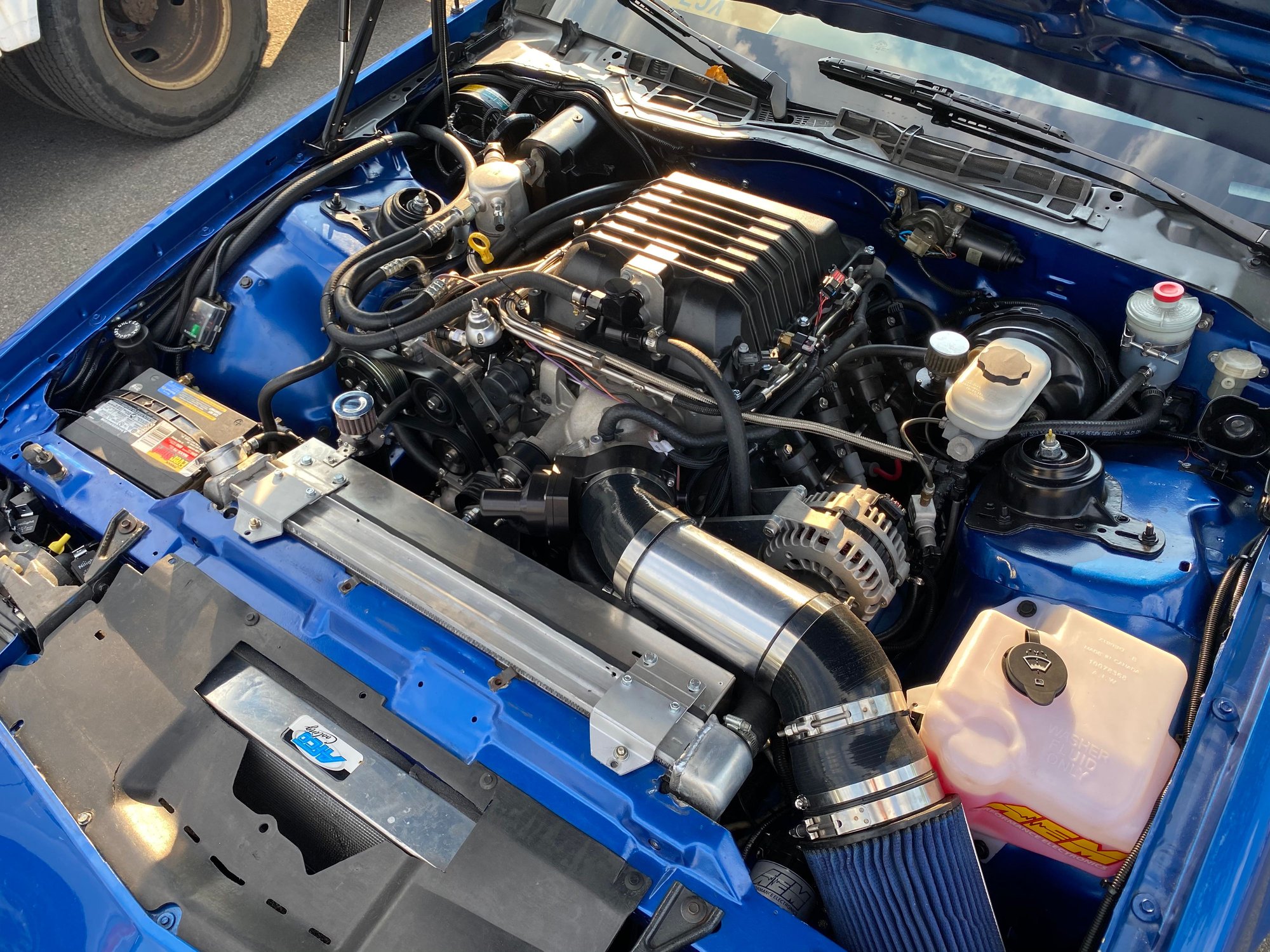Obviously adding power will add heat, but there should be no reason the thing can't run cool when it's just sitting there at idle with no a/c. I mean the cast iron boat anchor in my trans am runs cooler, and you'll melt your face when you open the hood on that thing! Im assuming the radiant heat coming off the blower lid, headers, and motor are just cooking everything. I mean it would make sense that running the a/c is going to pull even more hot air under the hood making things worse. I can't see cutting any holes in the hood that would improve the look of the car, so I'm open to any suggestions! Maybe I'll add an oil cooler, wrap the headers and add a small fan or two to under the driver side battery tray to suck air into or out of the bay? I'll see what the fans do tomorrow, seal up real good around the gap between the radiator and condenser, then go from there. My next step will probably be piecing together more of the air-dam being I'm missing some small pieces shown above. I'll keep everyone updated.