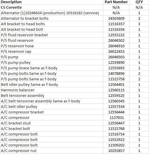 C5 LS1/LS6 FEAD Parts List