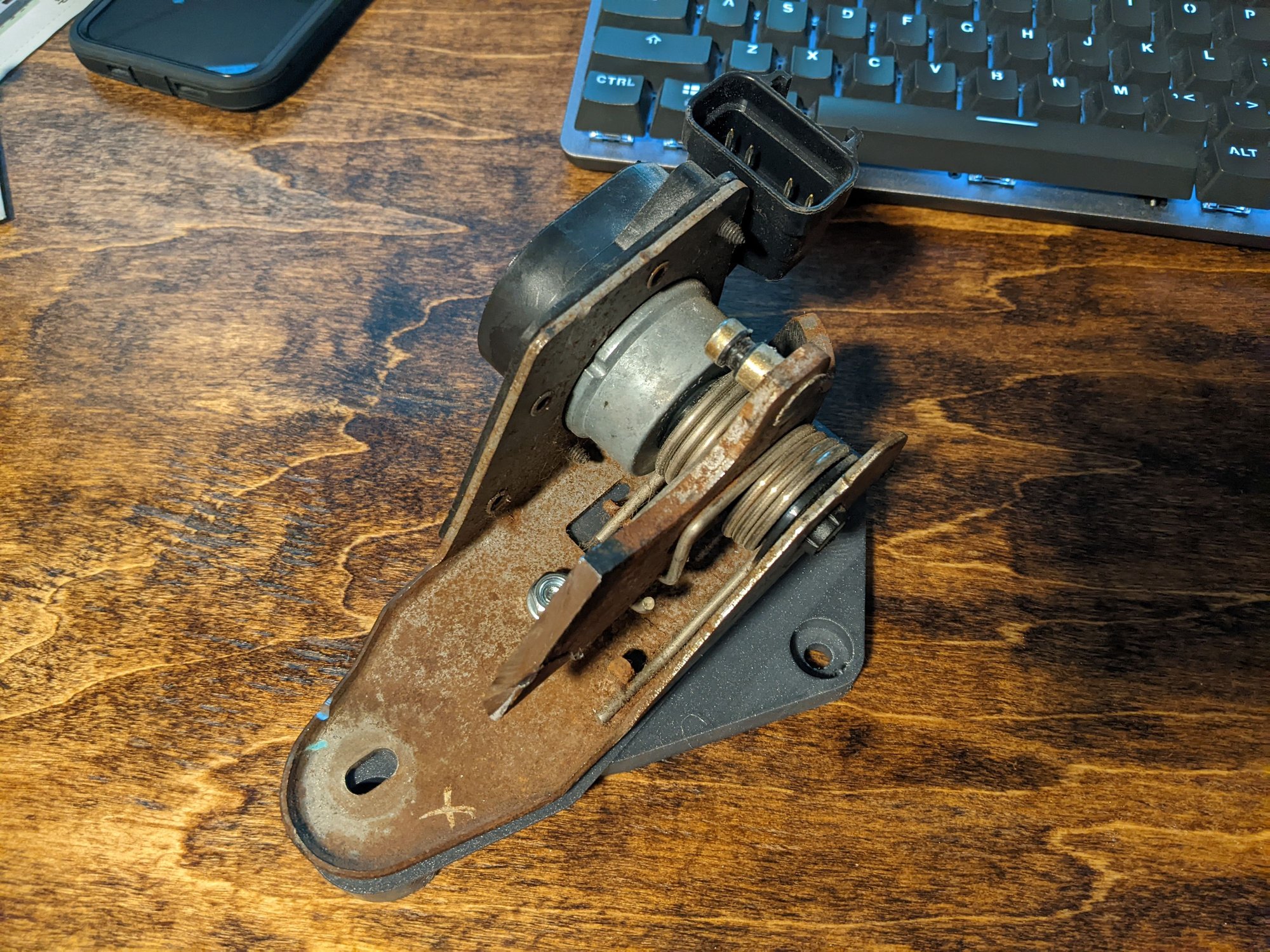 Exiled. I did a 3d scan of the fire wall and designed a bracket to use the existing throttle pedal bolts. I don't have any pictures of the final print but this is in theory how it worked. I cut up a stock 3rd gen pedal and welded it to a modified truck pedal. I ended up not going the DBW route since for some reason I lost throttle control so something must have happened in the ECM.