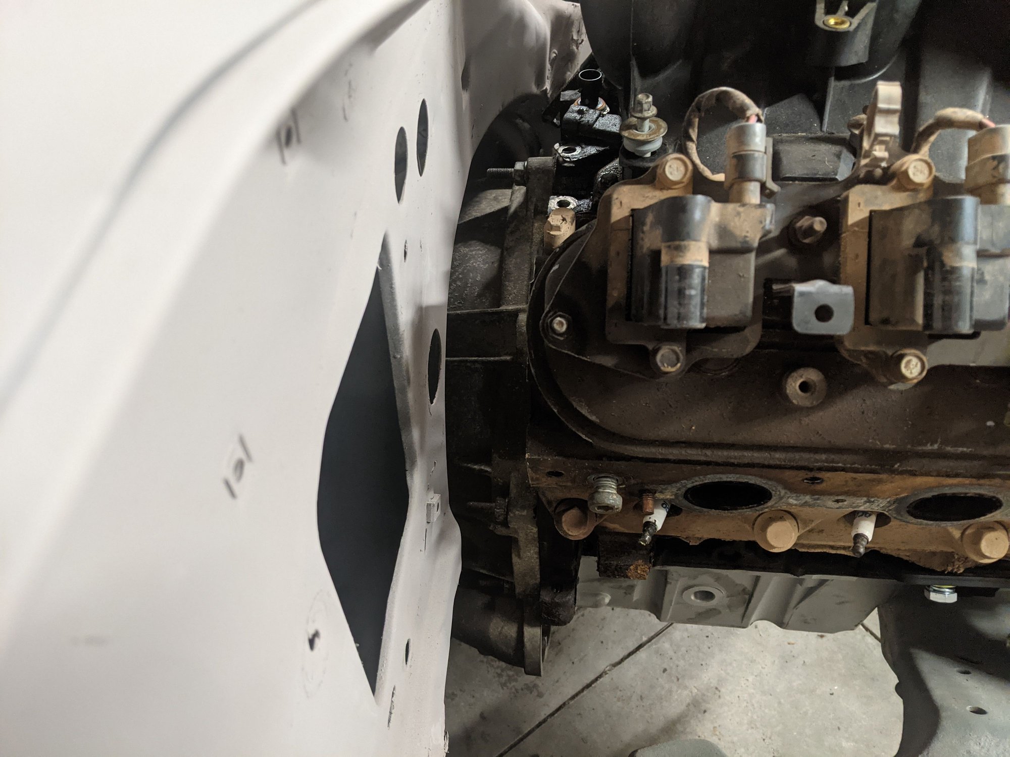 You can see F-Body pan does not hang past the lowest part of the subframe. Clearance to the passenger side head and firewall Clearance to the driver side head and firewall