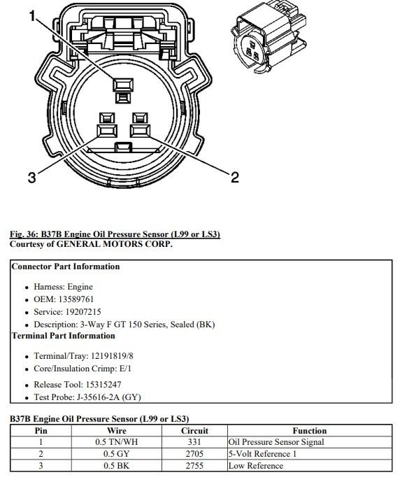 This style Oil pressure Transducer (Sensor) is Terminated differently in different Model Year Vehicles...