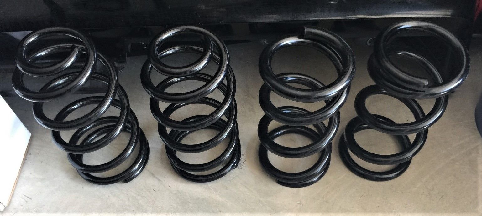 In the back the factory springs were replaced with 12" tall x 250lb Hyper-Coils. The Hyper-Coils are what they call "Stock Appearing."