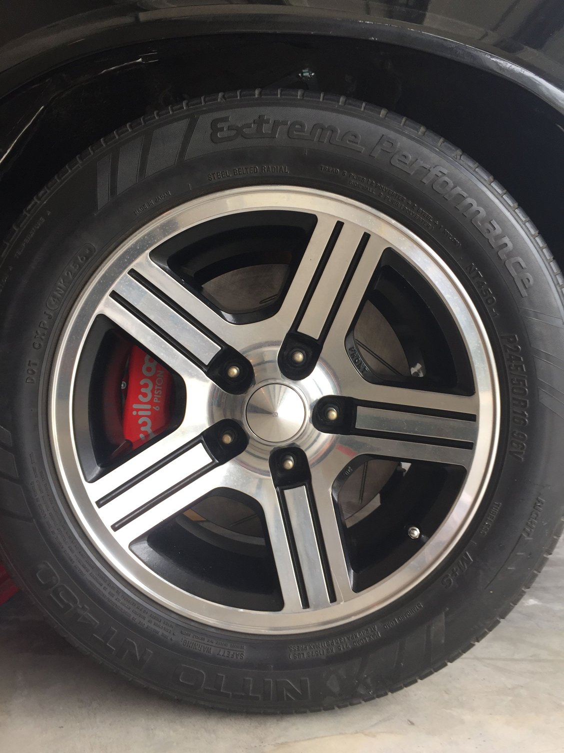 The calipers have more than the Wilwood recommended minimum of .080 clearance. This tire is so old it barely holds air!