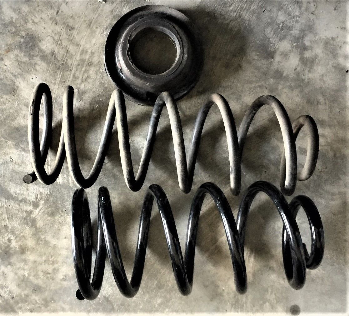 The suspension system is a work in progress. In the Spring of this year I replaced springs. Removed 850lb x 9 1/2" tall Tru-Coils in front and swapped in 11" tall x 1000lb Hyper-Coils.