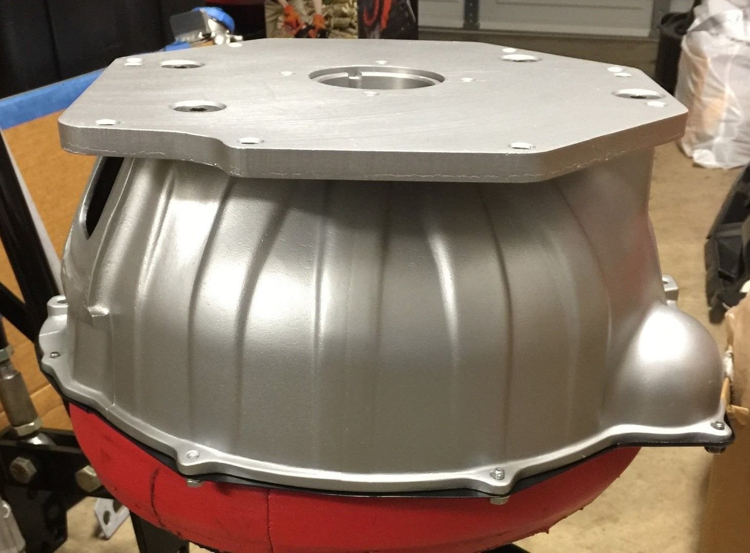 Here is the Aftermarket T56 without the adapter or T5 bell-housing. Driver side has the speed-o cable port & Rev. lockout solenoid Passenger side has the backup lights connector