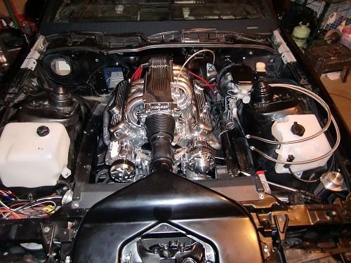 When I towed the car home, I discovered numerous mechanical & electrical problems. The BOSE unit did not work, neither did the fuel pump. After I replaced the fuel pump & repaired the wiring on the relay, the car would start and run but the cat was plugged. And the cooling fan switch had been replaced with a cooling temp. sender so the main fan would not turn on. I replaced the cat, grounded the fan and took it in for emissions. Fail! Did a leak down test and found the 5.0 not within spec so, I took the chance on a 68k mile car and had a valve job done. But before I put it back together, I noticed the T5 leaking fluid. My "good deal" suddenly seemed not so good. So... I bought a new ZZ4 short block and an "Aftermarket" T56 to replace the leaking T5. Then decided not to trust the 10-bolt behind a 5.7L and bought a Ford 9-inch rear end. For the "Aftermarket" T56 to work, an integrated TA & trans mount was needed. If you recall, the "Aftermarket" T56 are Viper based with an adapter plate that fits the T5 bell housing & custom tail section that changed the mount (a Turbo 400 will work), moved the shifter forward 1 5/8" and allowed a speedometer cable to be used. The skip shift function is eliminated but reverse lockout solenoid remains. One advertisement from the time said this: "Tremec #1386-000-011, "T5 Replacement". Application: 1994 LT1 Camaro." It's rated at 450ft/lb. has a 2.97 1st and 0.62 6th.