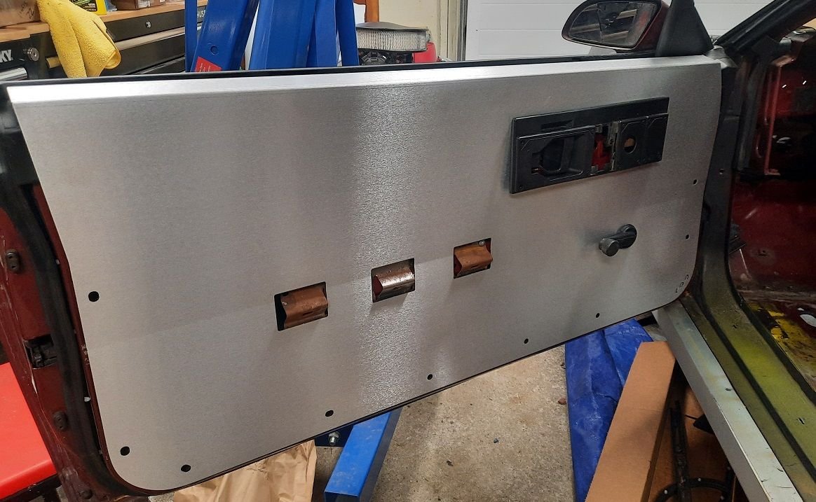 Got in my door panels from LRB and started mocking them up. (They'd actually be installed if I had bothered to get a rivnut gun ahead of time). Also, the eagle-eyed observers will note that I put the passenger side door handle bezel on...whoops.