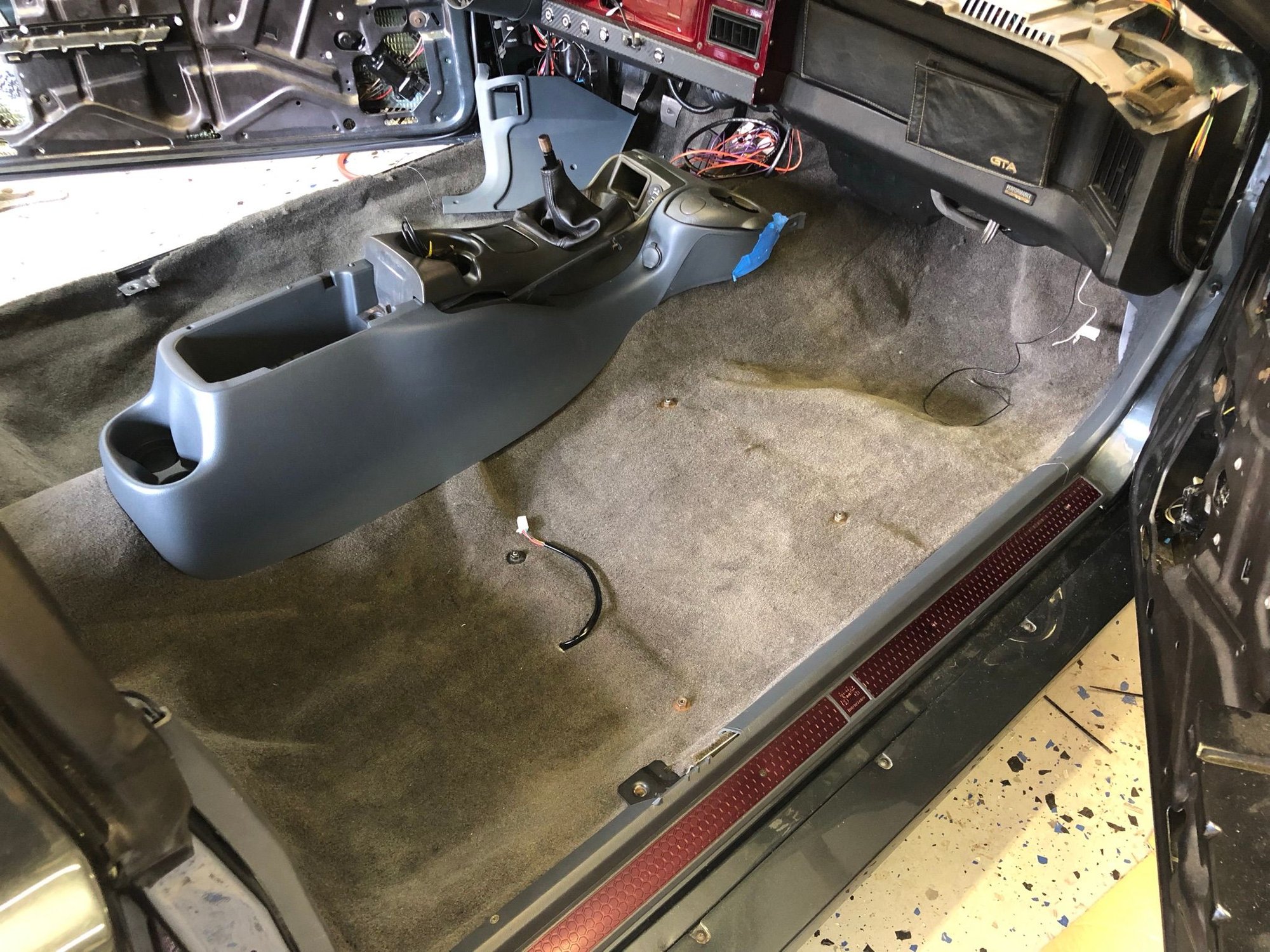 I got a lot of interior work done over the long weekend. I painted all of the interior panels and installed the carpet and center console. I don’t like the way the third gen radio pod fits with the fourth gen console, so I’ll be making my own. The photo is of a mock-up.