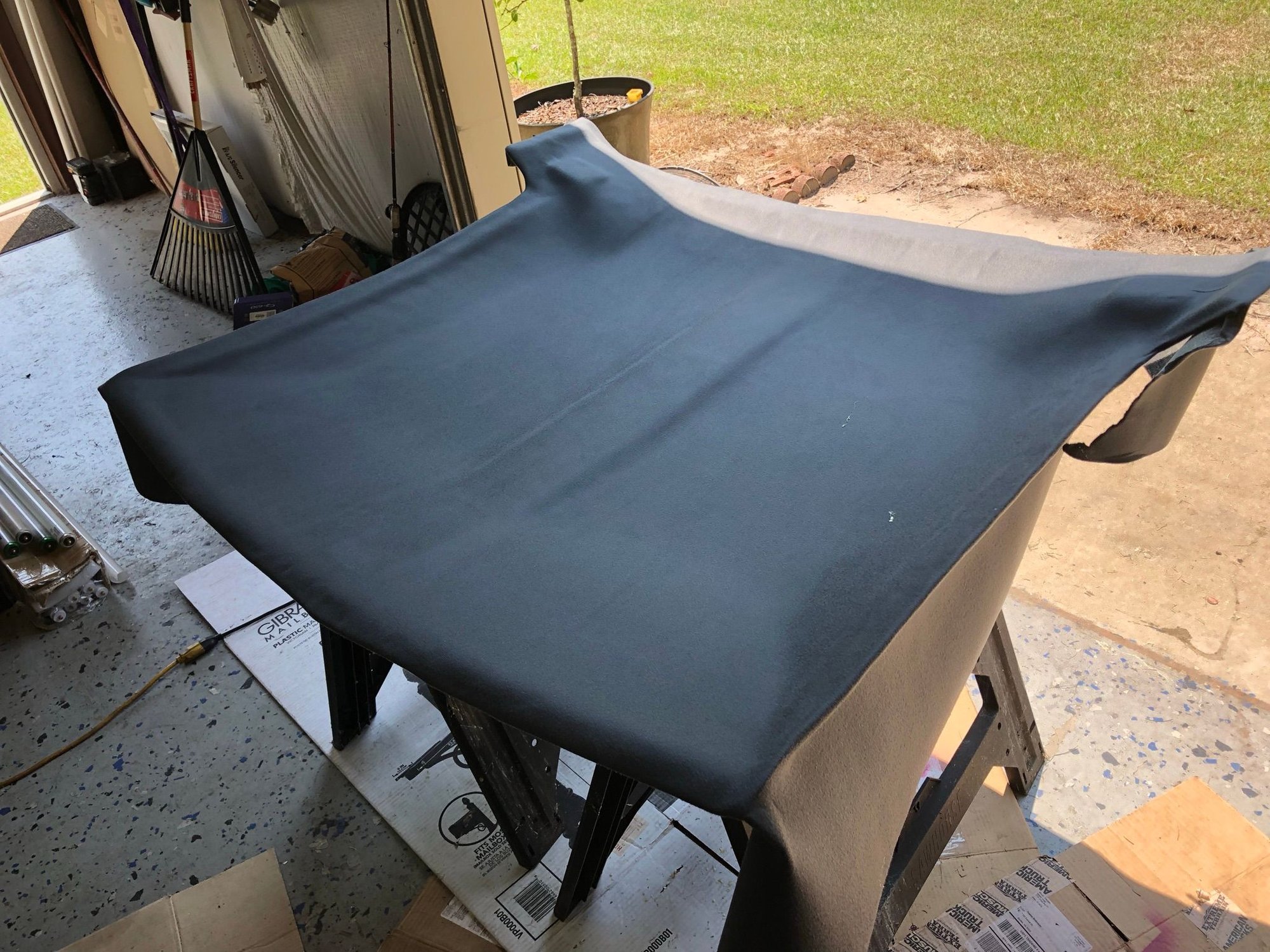 New headliner. I had to get a new ABS board. The original one turned to dust when I pulled the old fabric. I also did the sail panels to match.