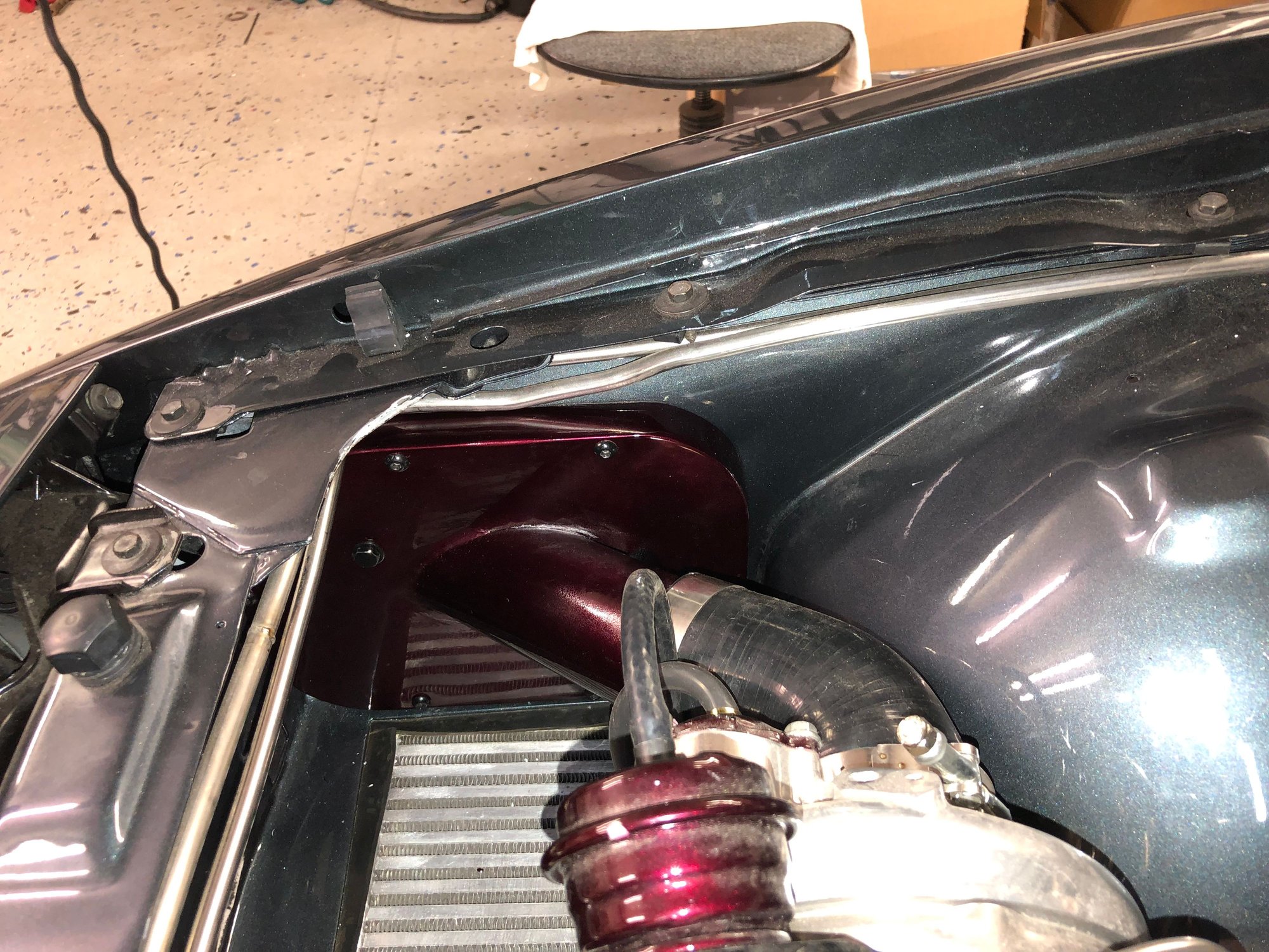 Getting the engine fired is a very exciting milestone, but it’s also what shows you what got screwed up. SInce the first engine start, I learned that I spaced my alternator wrong (belt kept walking off), had two fuel leaks (tube weld-seam on my flares), a steering gearbox input shaft leak, mis-wired PWM fan controller, electric water pump that won’t run at 100%, and an oil leak. Fixing that stuff gets demoralizing really fast, especially when you’re trying not to damage all the pristine paint & body and you’re not making additional progress.