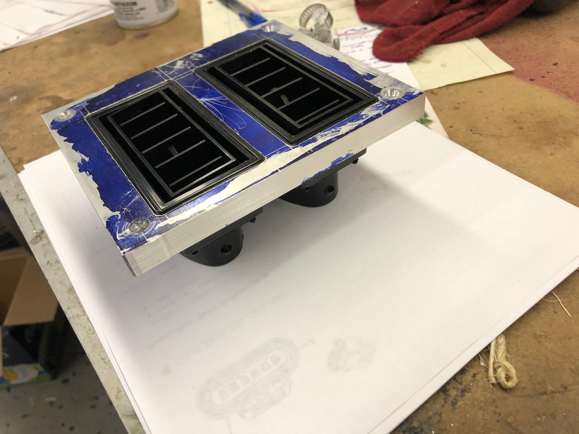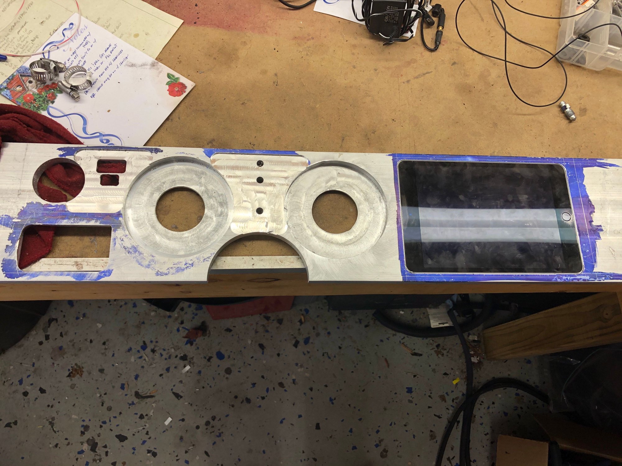I also gave up on trying to Frankenstein the stock instruments with the new gauges and iPad. I bought a 6x36x0.5 chunk of aluminum and decided to machine the whole thing. It means that I’ll have to add my own speedo, tach, and indicator lights, but it will look better in the end. Unfortunately, that’s on hold while I wait fir replacement gears for my mill. Boring the cutout for the column and the 4.5” reliefs for the tach and speedo were a little more than the little G0704 could take.
