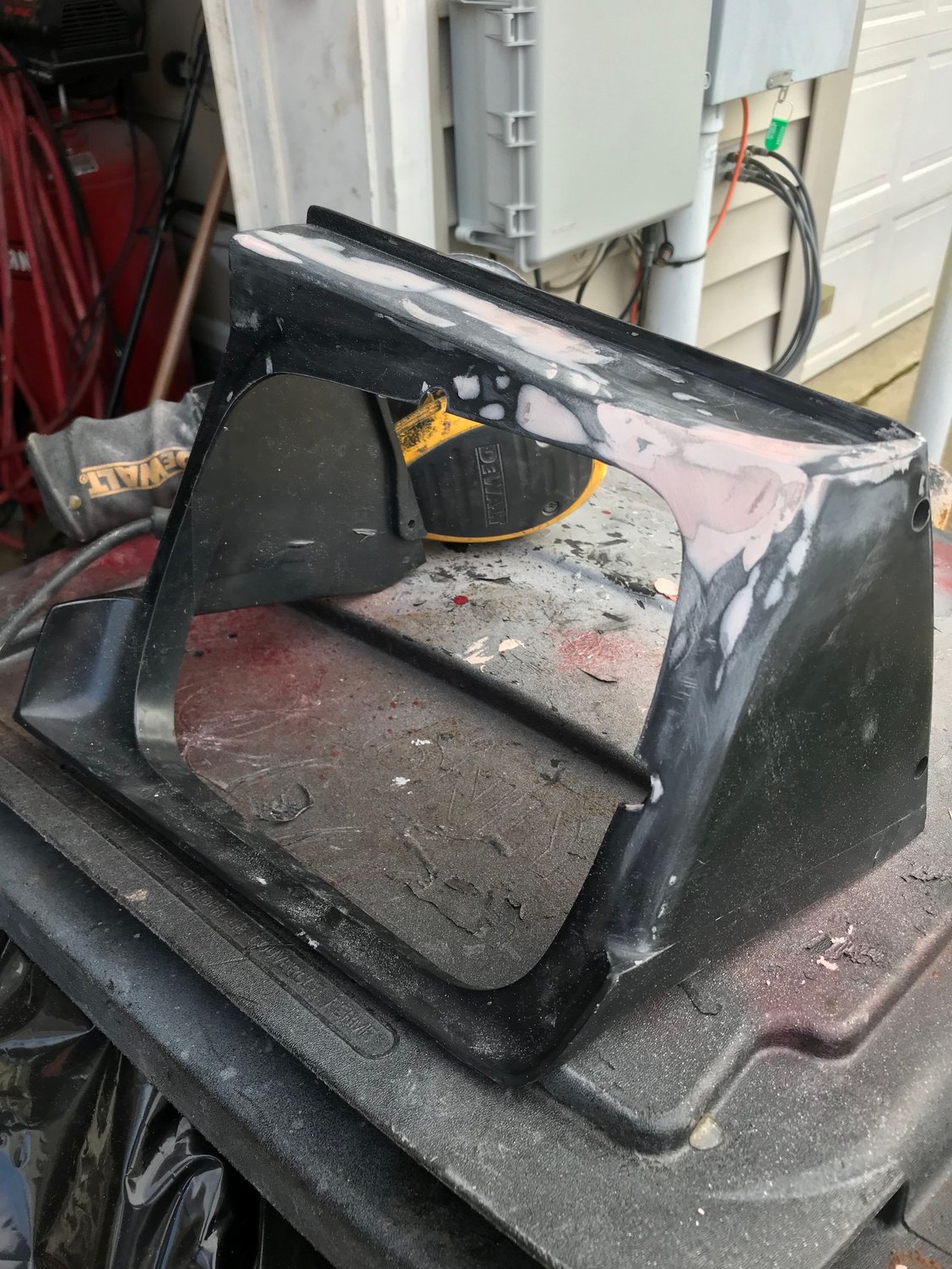 On the passenger side bezel I tried a different method and was able to get good clearance with only sanding and grinding the shroud (you still will need to cut and level the lip).