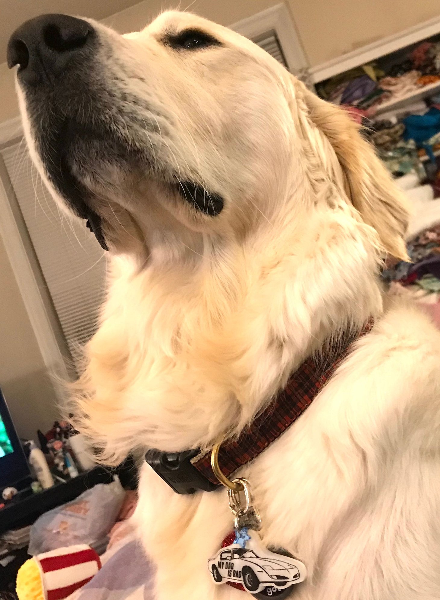 My wife got our golden retriever a pretty cool new Dog Tag (although I realize the lines are for a second GEN I did have the artist re-draw the spoiler and nose).