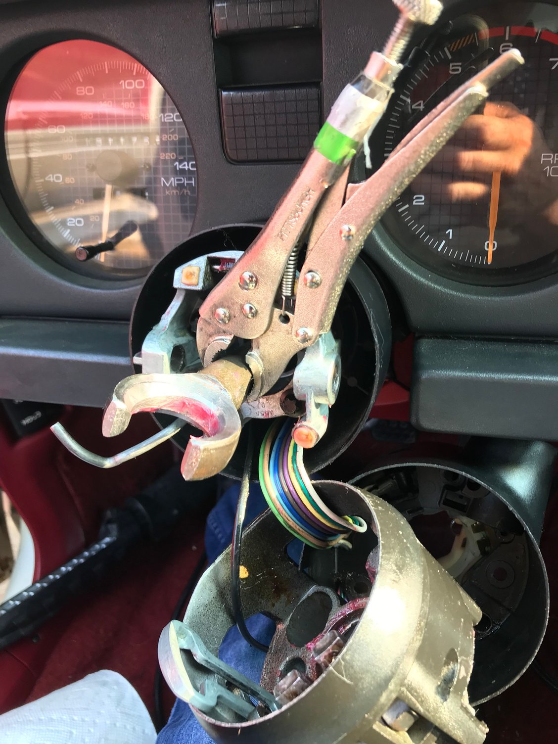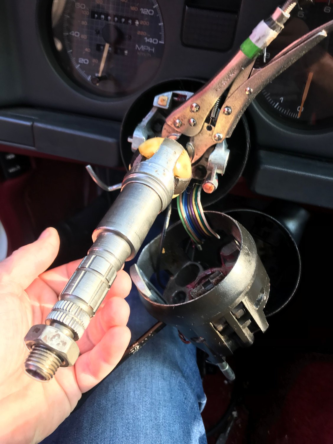 I have a parts column out of my 90 if you need it! mine was easier to swap than fix all the dumb sheet a previous owner did trying drill lock cylinder and all. I did happen to find fresh meat at pick n pull that column was good and was only $45 without air bag (it turned into a ordeal like yours just for cruise control)