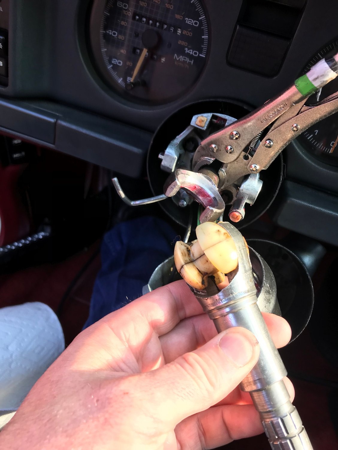 Couple things. The upper steering shaft is keyed so make sure you install it the right side up. Otherwise, your steering wheel will be 180 degrees off center (aka upside down). In hindsight, there’s a little notch on the end of the shaft for which side to put up. But hindsight is not 20/20 and I had to take everything apart to remove the shaft to flip it.