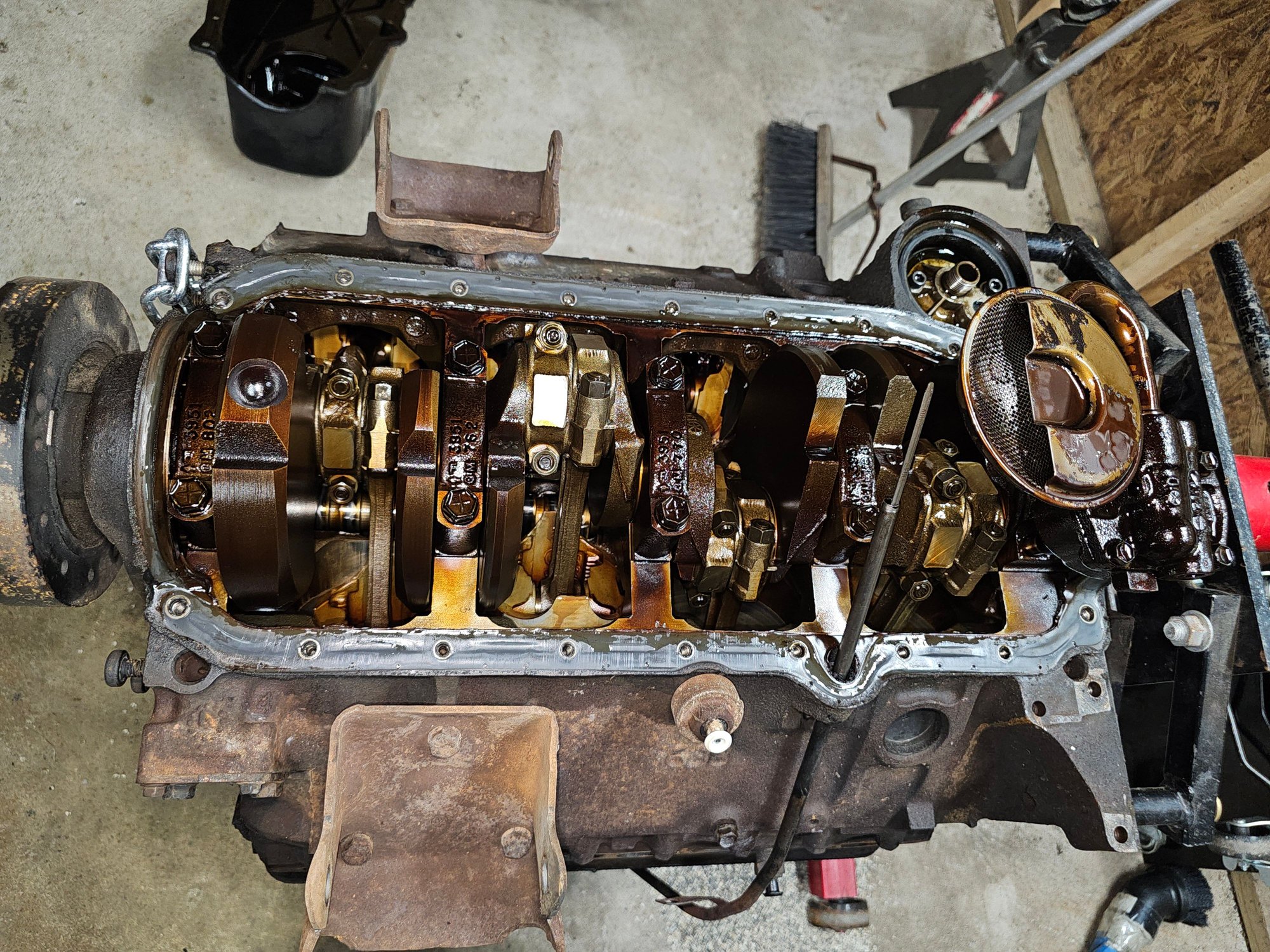 Hit a bit of a roadblock. I have 2 broken pistons skirts sitting in the bottom of my oil pan. Now I need to decide what route I want to take. Tear the motor down and rebuild, or send it and go full ls swap. Neither is in my budget, but if I had to build a motor, it wouldn't be a sbc. I can't tell if the pistons themselves are cracked, or if its the rings. So either way I need to tear it down. Cylinder 6 Cylinder 5 Chunks in the oil pan