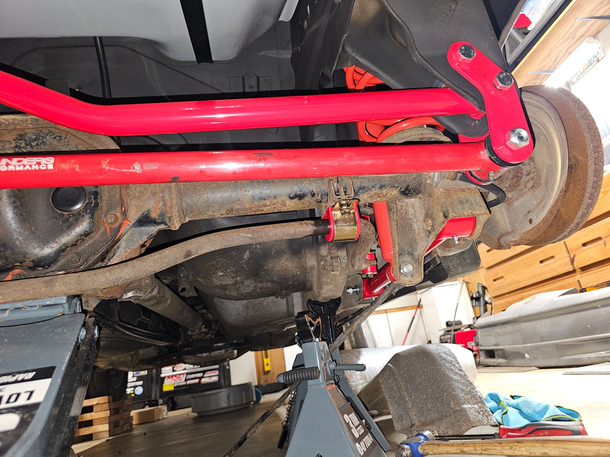I put undercoating on the bottom side of the fuel tank trap door repair. Bought a Jegs brand coated gas tank, and sending unit. Running a Racetronix 255lph fuel pump, and a hotwire kit. Since the entire rear end was out, I swapped out all of the rear suspension with UMI performance parts, and KYB struts. JEGS brand coated tank. JEGS states that this tank does not fit 88 and up, but that is just not true. This is the cheapest tank they offer and its one of the bettercfitting in my opinion. I have used it numerous times. Racetronix fuel pump, sending unit and hotwire kit. Racetronix pump. I remember when these used to be purple plastic. Tank living in its new home. Undercoated the whole rear fuel tank area. You need to run a 4th gen vented cap with the JEGS tank, but they dont tell you that online. Founders adjustable panhard bar, UMI performance lower control arms, upper panhard bar, Eibach sportline springs, and energy suspension bushings on the stock rear sway bar.