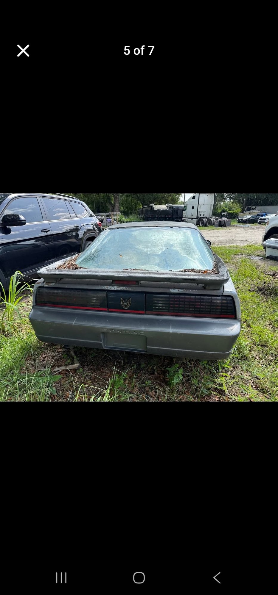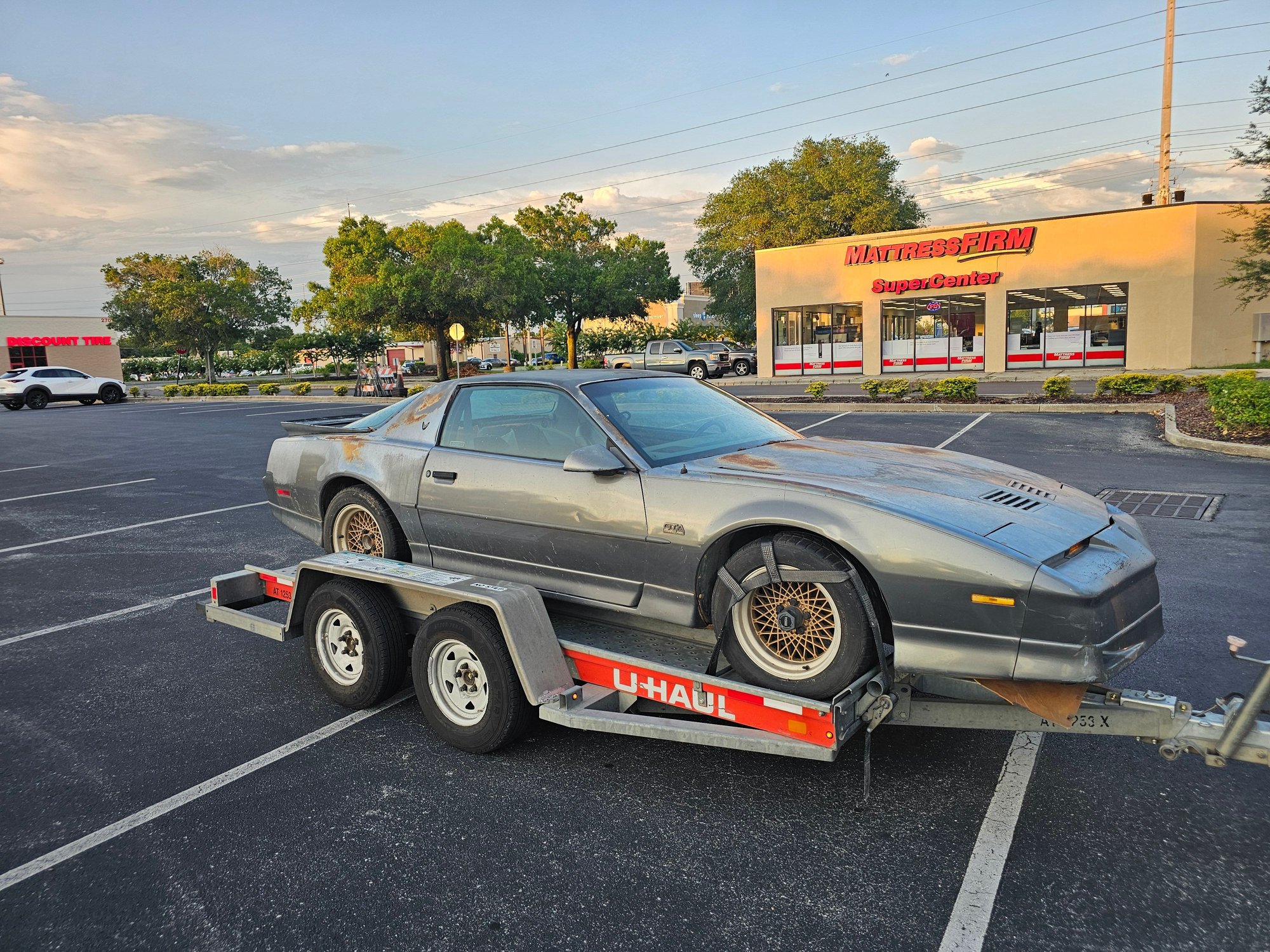1988 Trans am GTA Nicknamed "Cthulu". I bought this car for $1500 non-running from a repo lot, No key, broken steering column, faded paint, dead battery, Pontiac G6 seats welded to the floor, and a pile of parts in the interior. Supposedly it was dropped off at a paint shop and the guy who owned it, never came back for it and never paid the paint shop any money to repair it. Solid hardtop car, L98 motor, 700r4 automatic, no door rot, 9 bolt rear disc brakes, overall a clean, straight(ish) car. A bunch of the front trim including the bumper, fender ground effects and air dam were destroyed from the repo company moving it around the lot with a wrecker. Here are the pictures from the ad and from the u-haul ride home. I found this car 4 hours away from my house. Screenshots from the Facebook marketplace listing On the trailer, headed home with me!