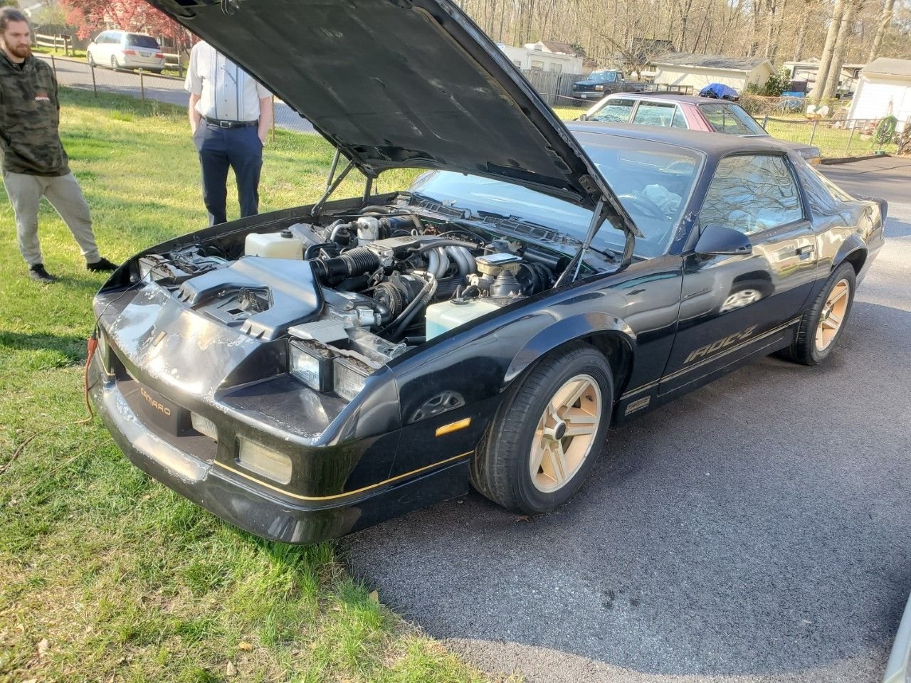 apparently i had a 92 firebird back in 2014 when i made an account here, but i dont remember ever actually picking up the car... i woulda been 21 so who knows what happened, HOWEVER * i bought this '85 iroc Z28 yesterday for $3200. she has 157k on the body, no rust!! the owner said his buddies son had a 327 block laying around and built him a motor for it - allegedly .030 over. looks like a later 80's LT1 350 to me but im gonna try to find a plate to ID later today.