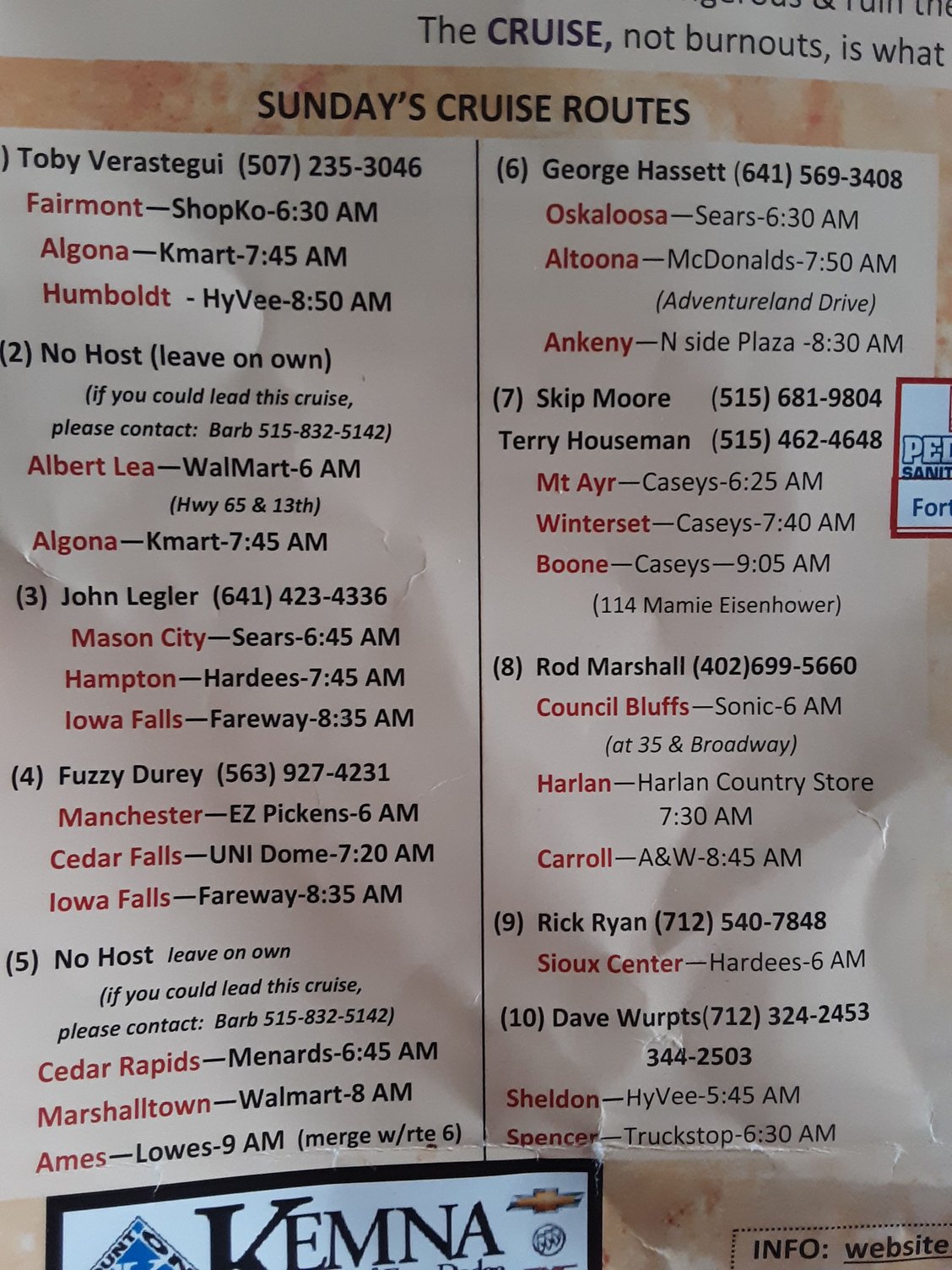 There's a route that starts in Oskaloosa that comes up through Altoona and Ankeny. It leaves McDonald's in Altoona at 7:50am, and it will leave N Side Plaza in Ankeny at 8:30am. Jump in one of those groups!