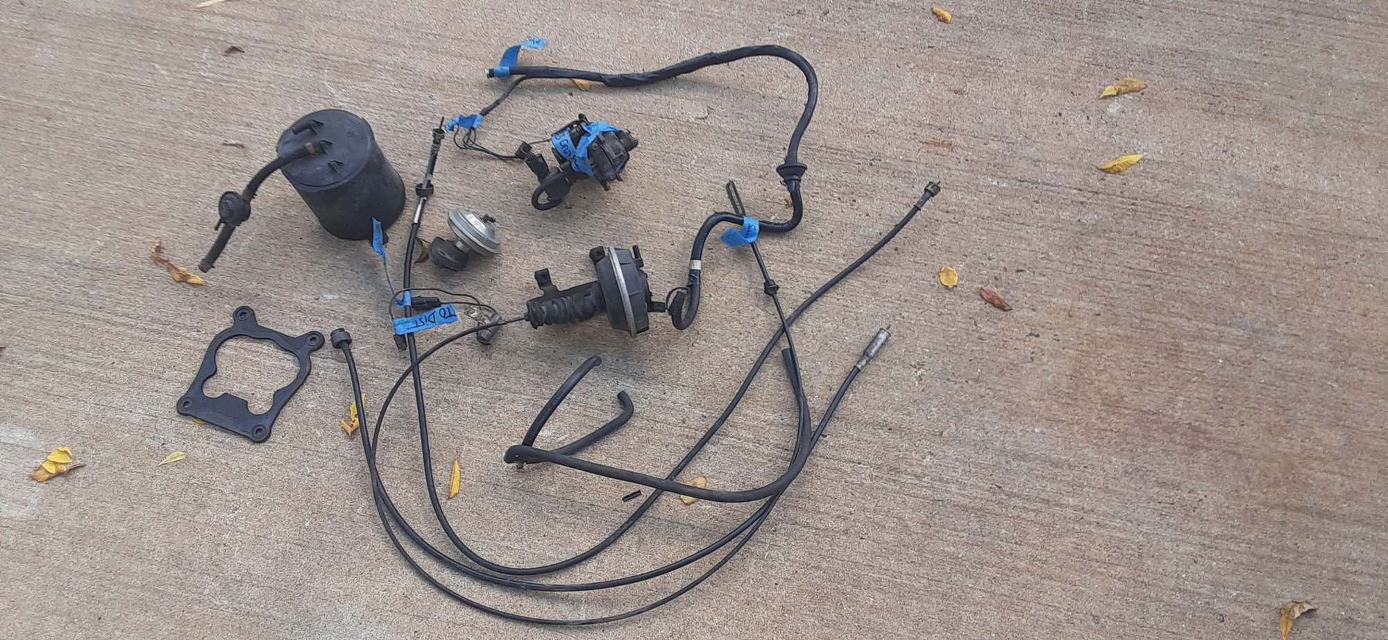 Hello everyone. I have the cruise control parts, ie. vacuum canister, controller, and electric connections out of 83 305 V8 carburetor Camaro, all were properly removed / disconnected, not cut. Also, the OEM steel fuel tank in excellent condition with sender etc.All this came out of running driving car in 2021. The entire drive-line, and related engine operating wiring / CPU is sold. see pics, hate to throw these last parts out, glad to make a deal if we can keep shipping cost down. I am in MI.