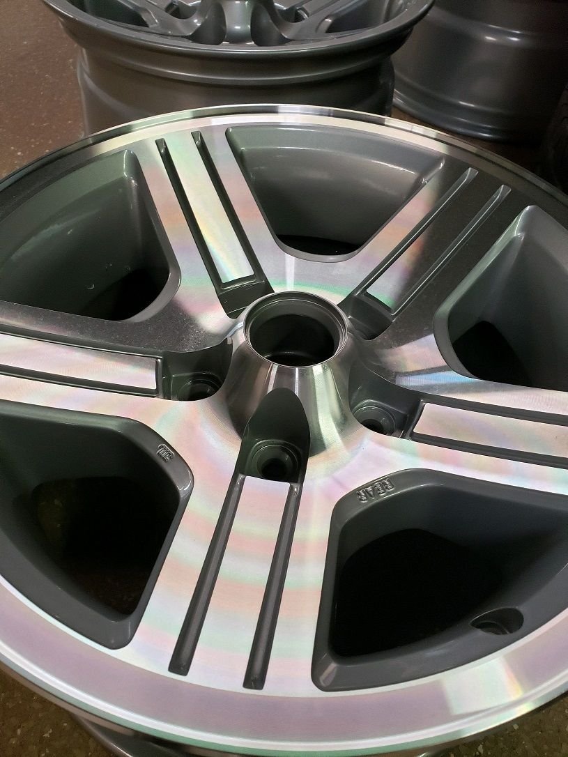 After AWS blasted them and powdercoated the entire wheel (before machining).