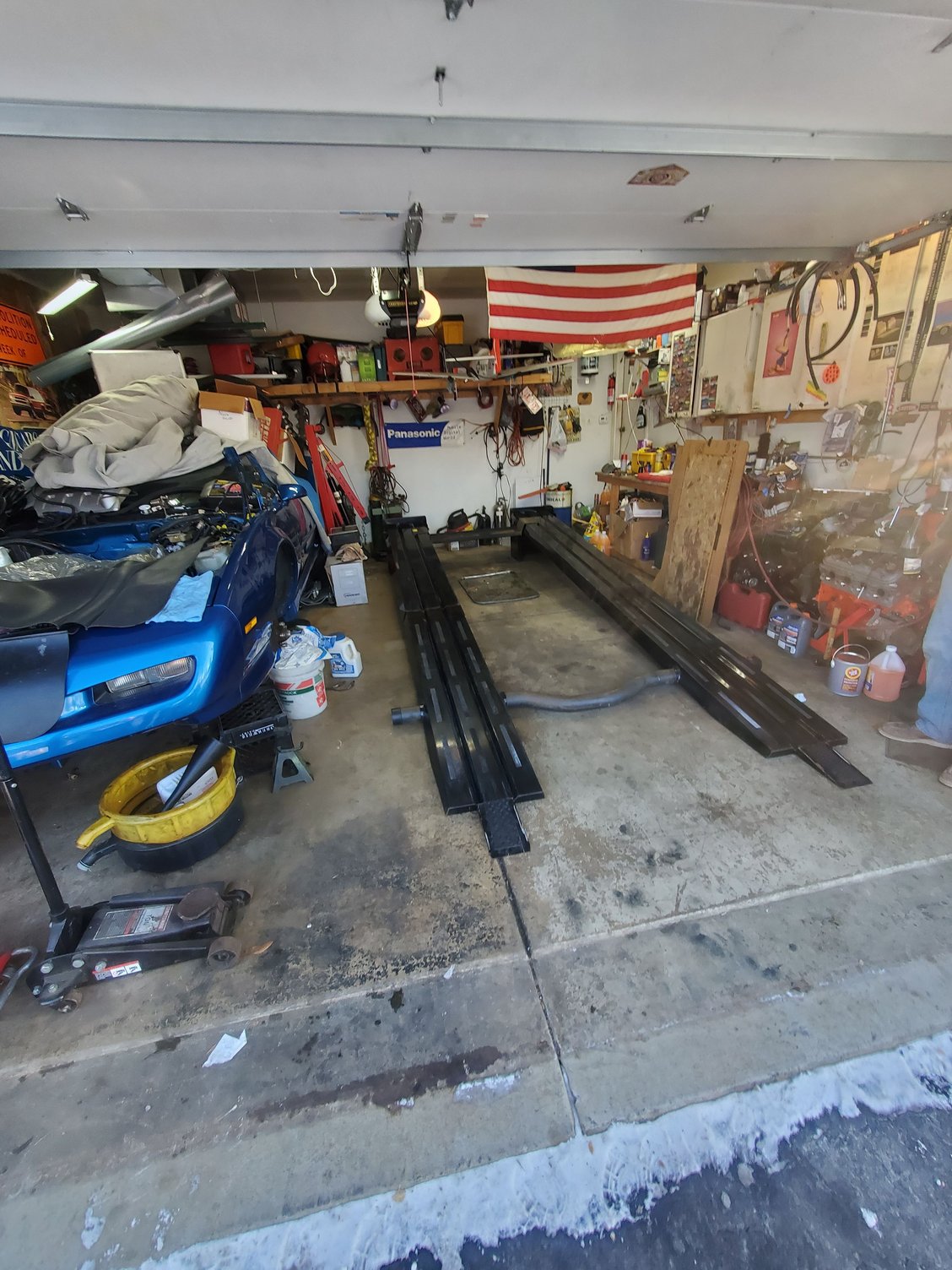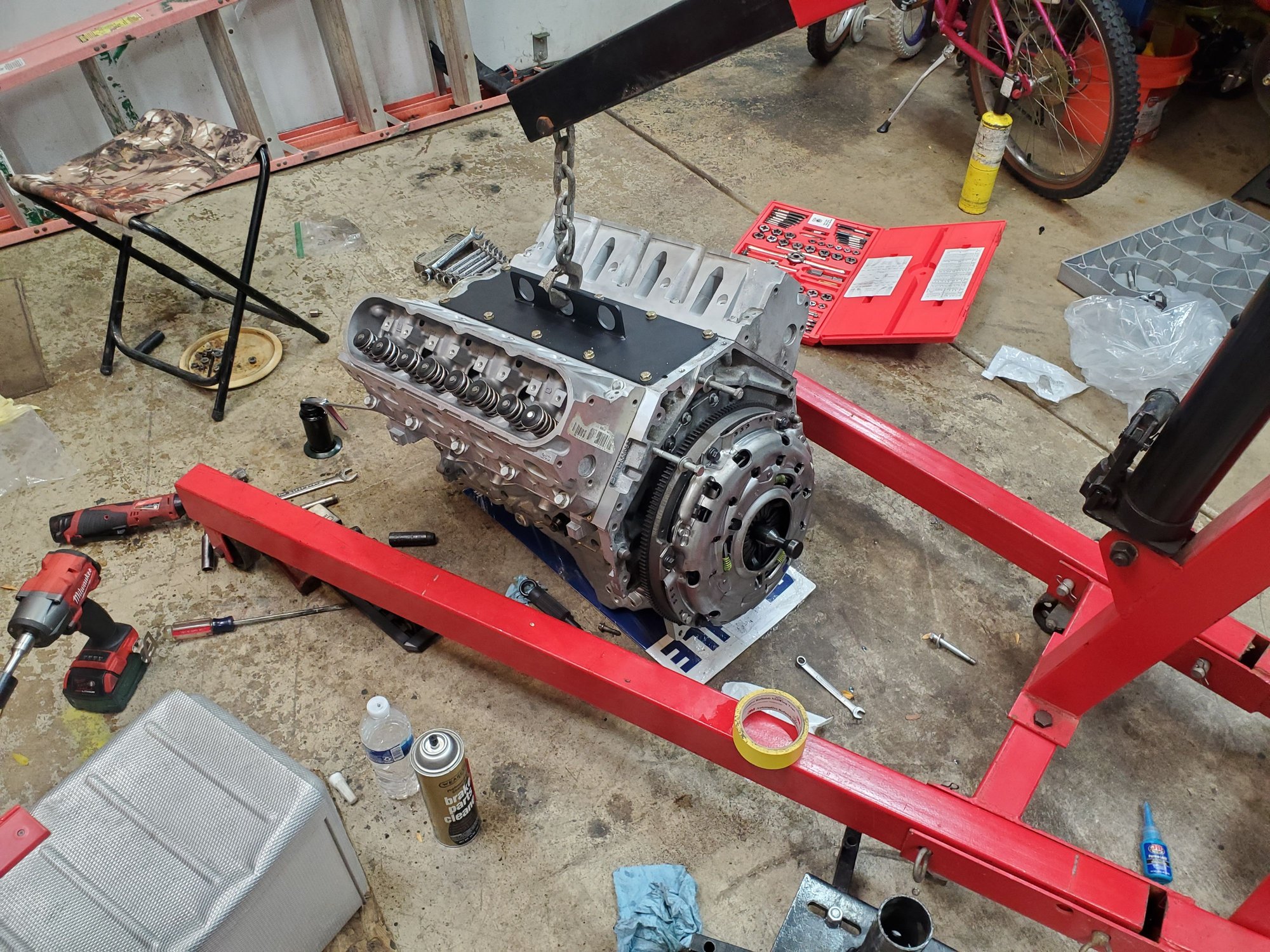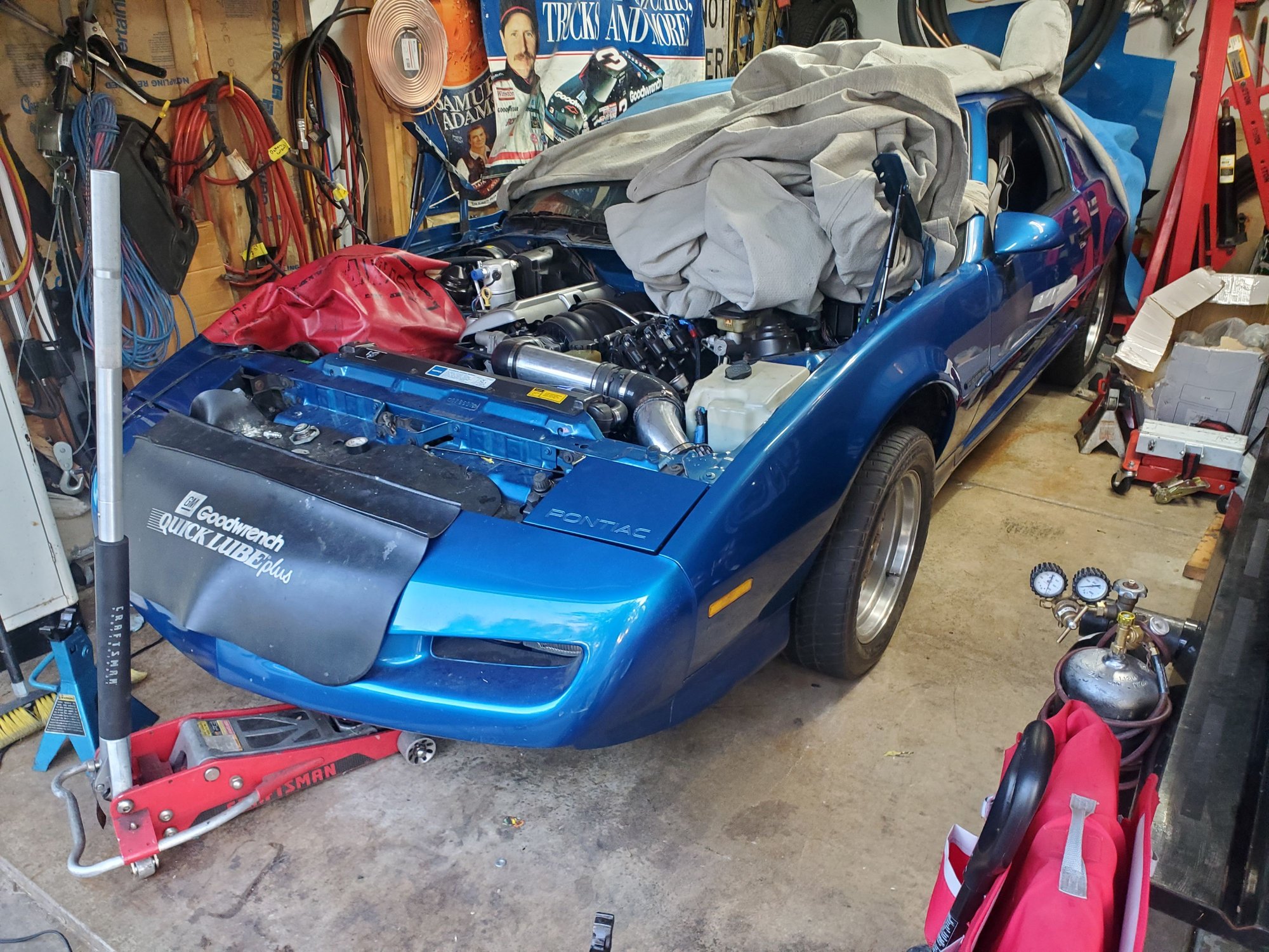 Cleaned some of the disaster up and got it back on the ground, for whatever reason I'm not getting the speedometer to work even though I had it going with the lt1 t56. Now I need to get it on my lift so I can get the exhaust on so I have less chance of waking the kids up when I'm trying to figure the speedometer out.