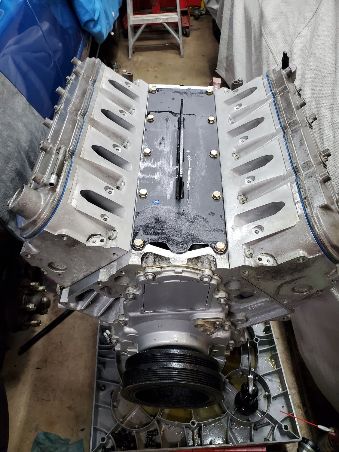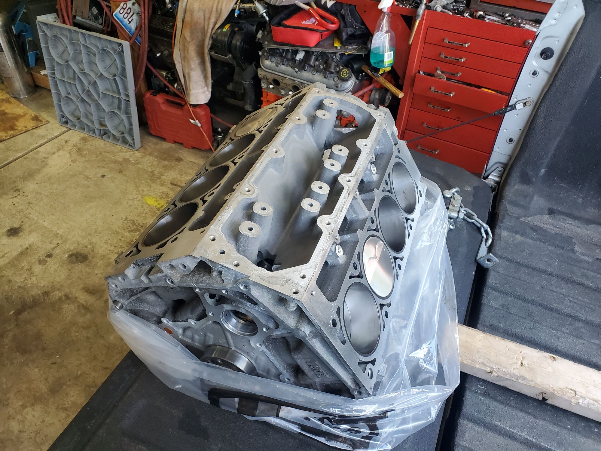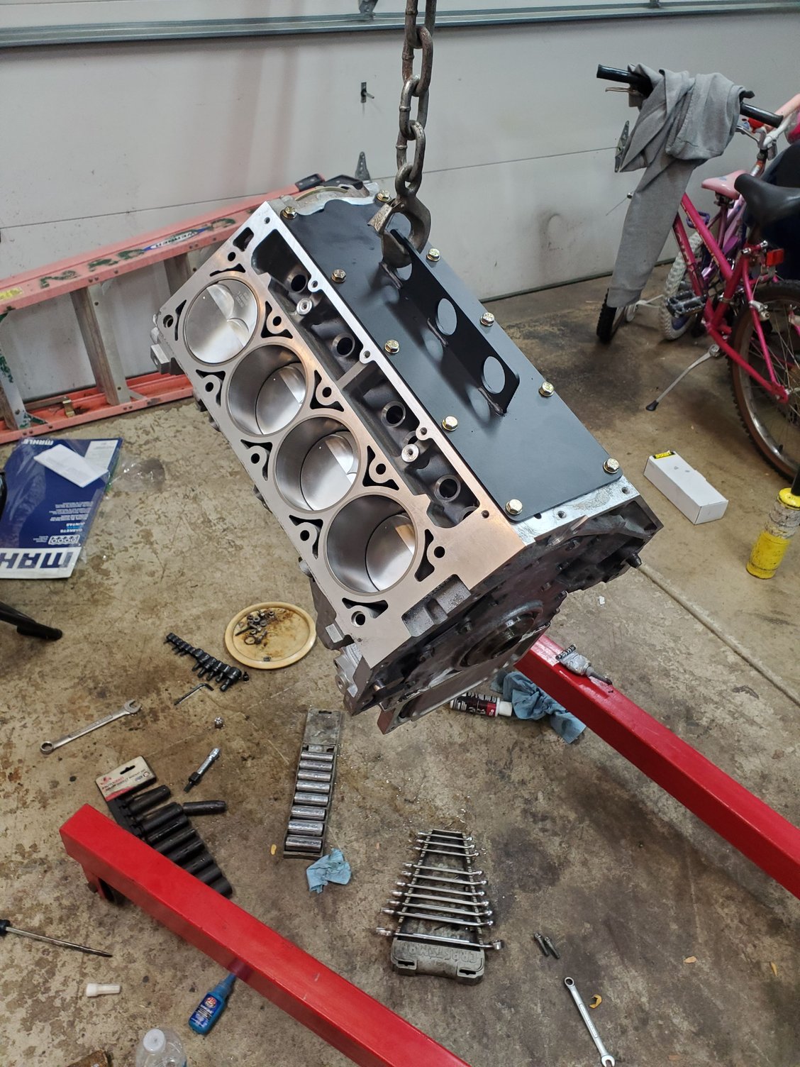 Been pretty busy at work and doing a lot of sidejobs lately and family stuff but just picked up the short block yesterday. With the extra side work I might throw the cam I have in before I put it in, need to make a list of everything I need but think it's lifters, rockers, push rods head gaskets front/rear cover gaskets. Should probably clean my mess in the garage up before hand. Still need to figure the speedometer out when I get it going, get the exhaust done and get the ac lines done. I did get the holley engine mounts in so if anyone wants a set of umi mounts I'll sell them.
