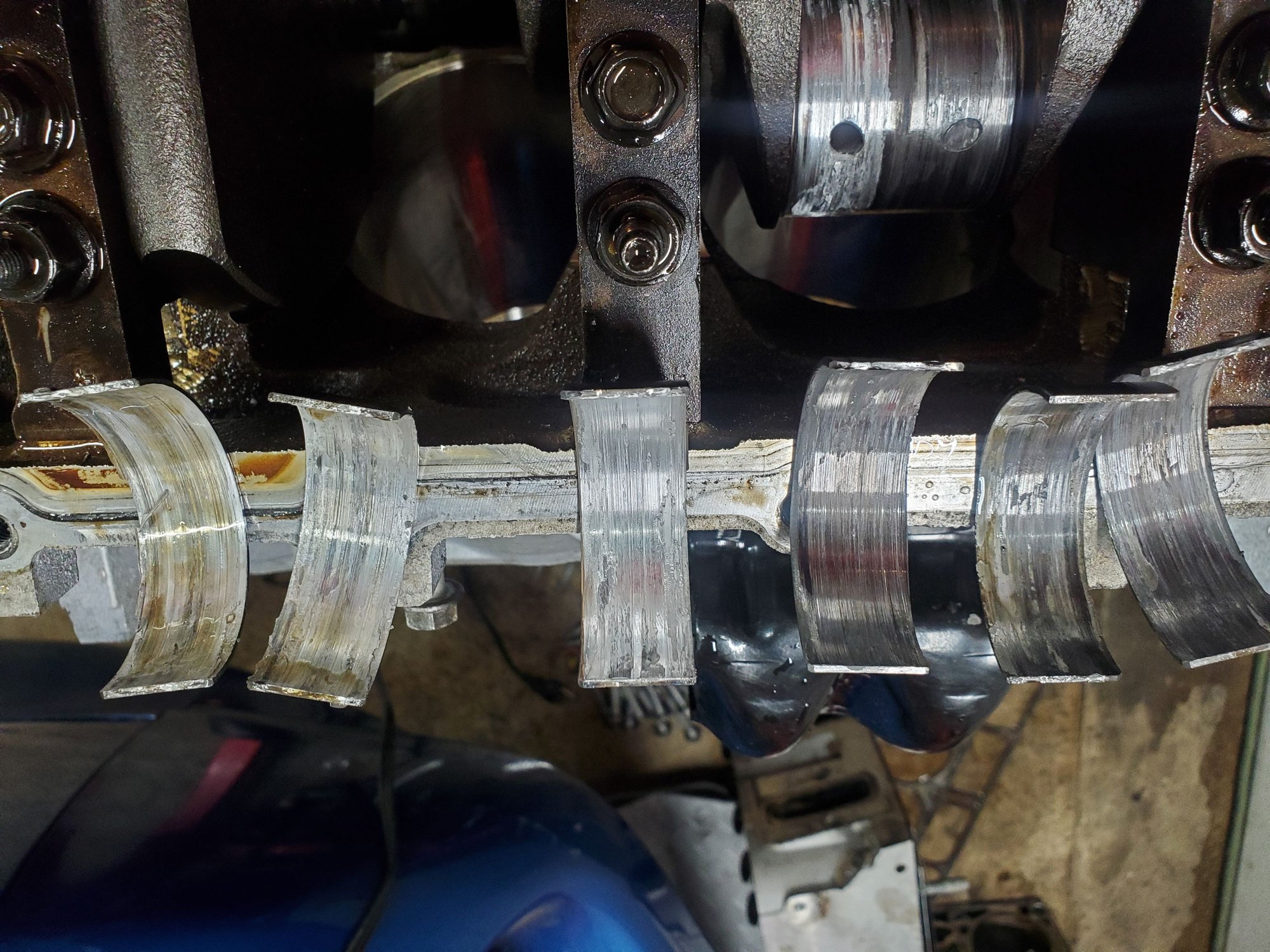 6 of 8 rod bearings roasted, I can still see cross hatch marks on cylinder walls maybe get a rotating assembly and do it myself. Hada QUOTE for 4k rebuild it along with valve job and going through the heads.