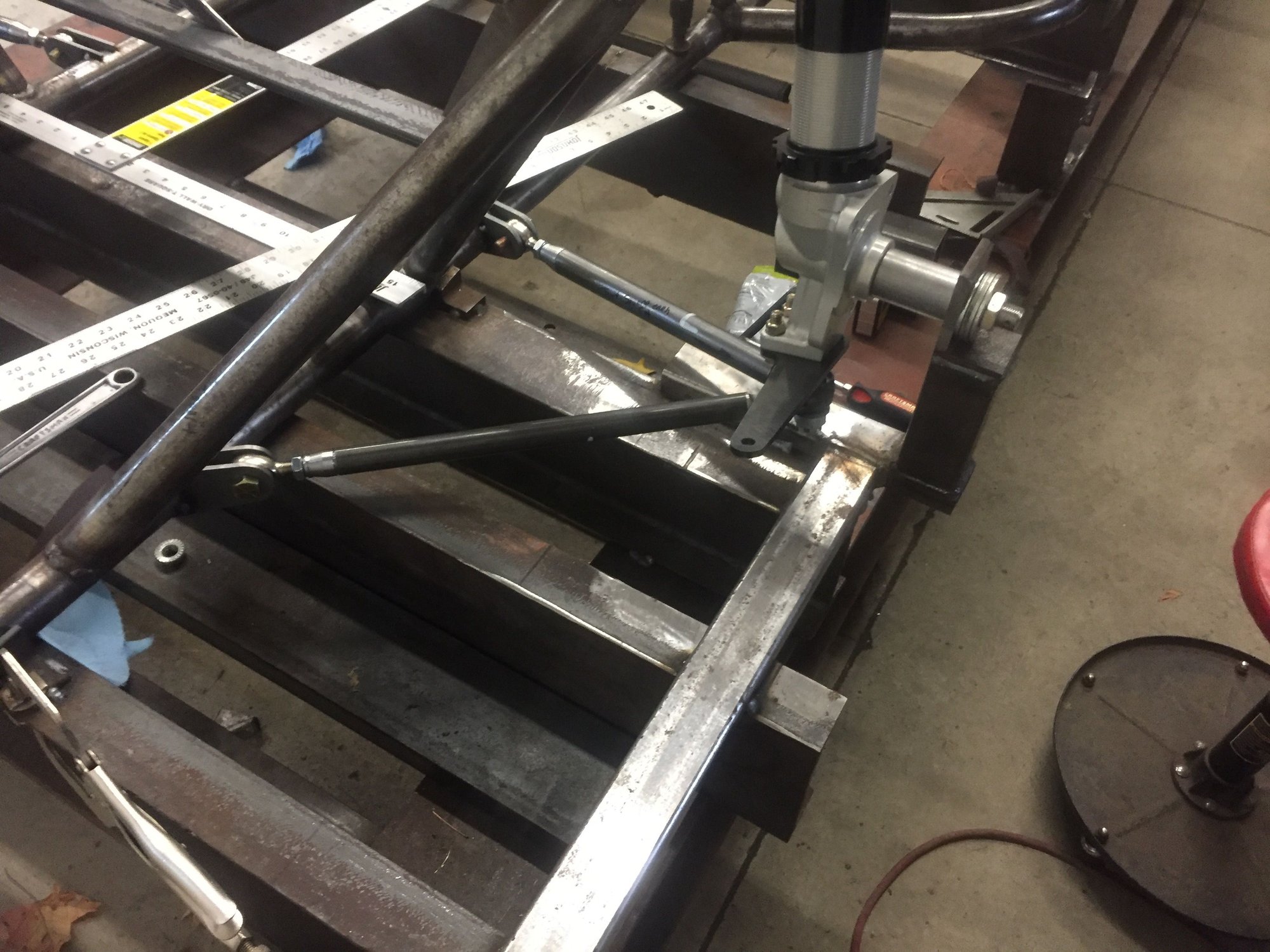 Making progress, had to change tubing around rear transmission mount to satisfy spec changes and make some more foot room. Lower control arms and mounts done. Moving on to the rear.