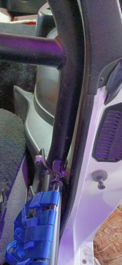 The seat contours I have allowed the angle of the bar to pass through that outer pocket and also skip by the door handle. The guy who built this did a great job and didn't need to put any bends in the door bars.