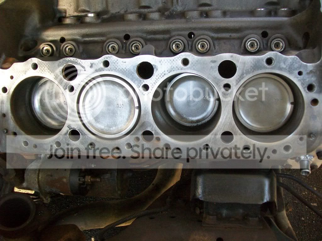 I had to pull the 416 heads. I got in touch with the guy I bought the old '84 project from, and he said that he always suspected something was wrong with one of the heads, he felt that one of them was cut down and one wasn't. I didn't even bother to check that when I did them, as I was so focused on so many other things. The engine ran fine with them, but just the idea of that made me upset. I already had a set of 187 heads that are now finished, and should flow the same as the 416's, without the worry of them being altered in any way. For peace of mind I really had to do that, plus I wanted to see how the pistons looked anyway, they look good...